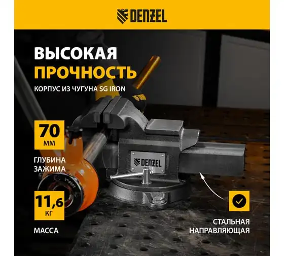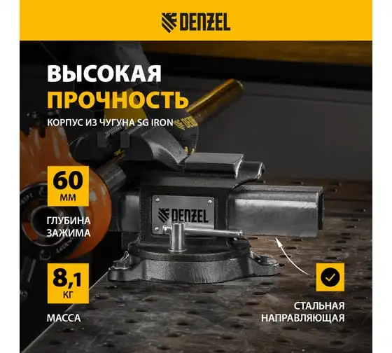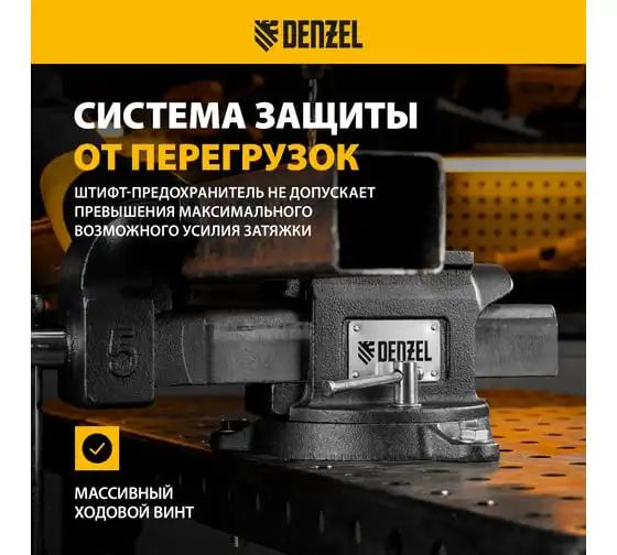 Тиски слесарные Denzel BVH-125, 125 мм, поворотные, стальная направляющая, с наковальней 18684