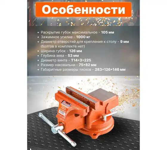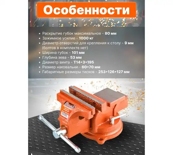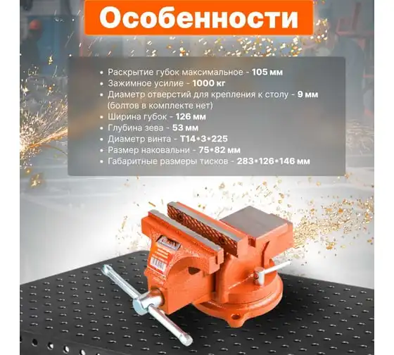Слесарные тиски SPARTA 150 мм, поворотные, с наковальней 186275