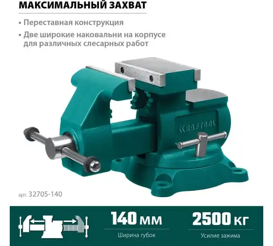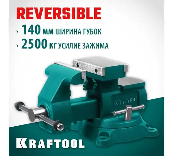 Слесарные тиски KRAFTOOL Reversible 140 мм, расход 273 мм 32705-140