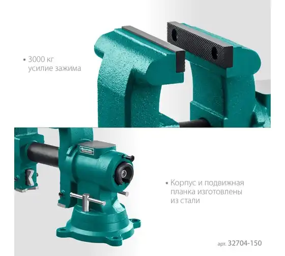 Слесарные тиски KRAFTOOL 3D-Steel 150 мм 32704-150