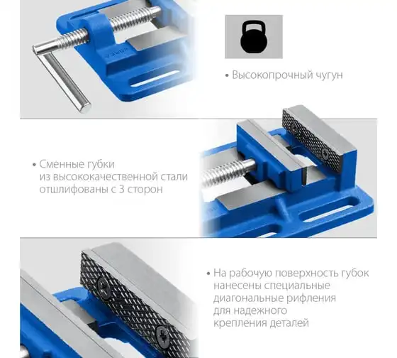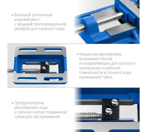 Трехсторонние станочные сверлильные тиски ЗУБР Профессионал 100 мм 32723