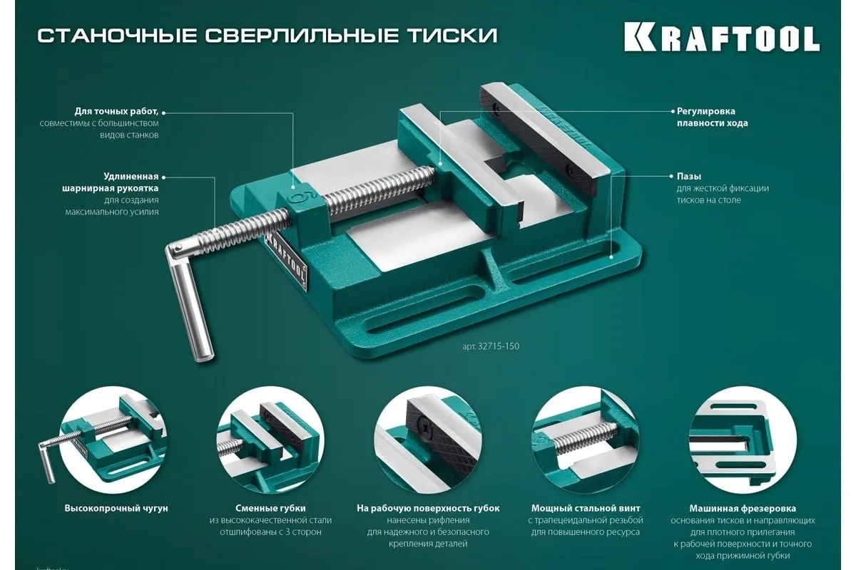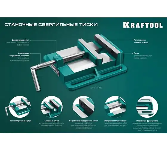 Станочные сверлильные тиски предназначены для надежного закрепления деталей при их механической обработке на фрезерных, сверлильных, шлифовальных и других станках. Обеспечивают длительную и качественную работу. Изделие подходит для точных работ. Тиски обладают надежной конструкцией.