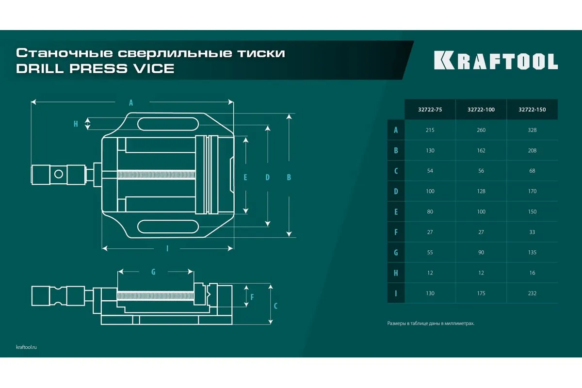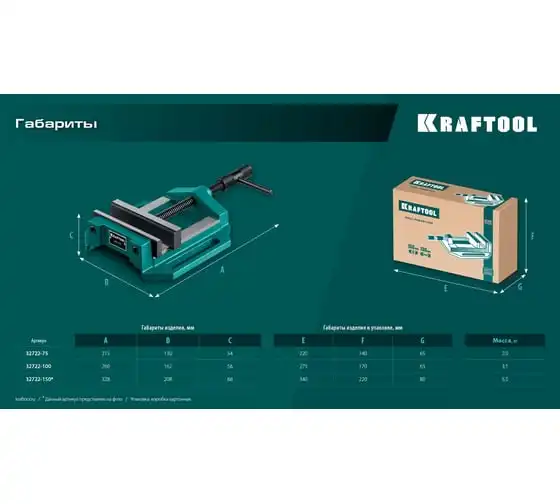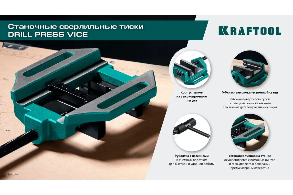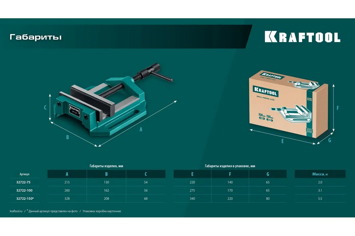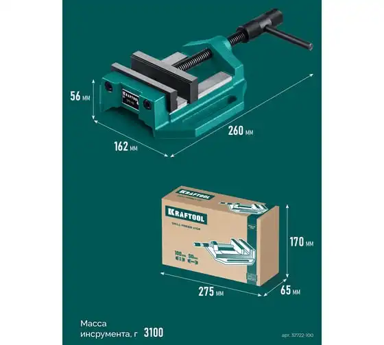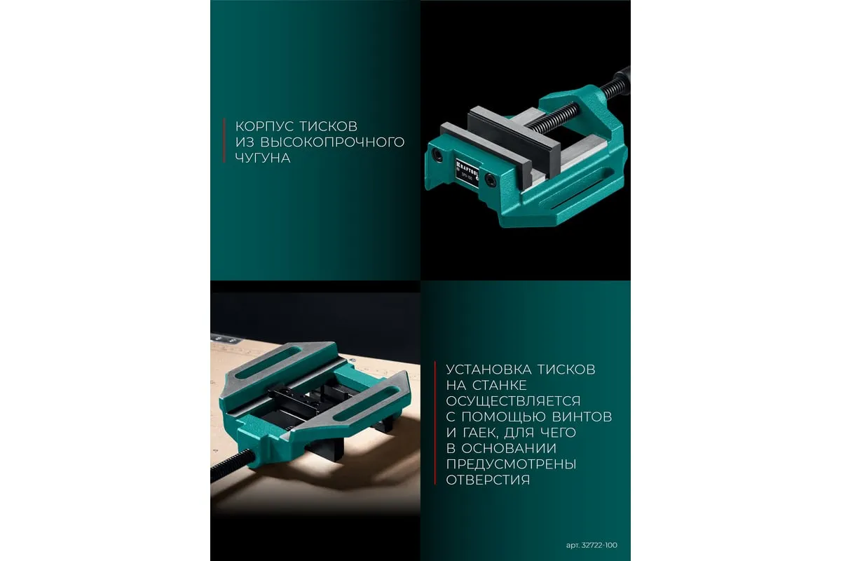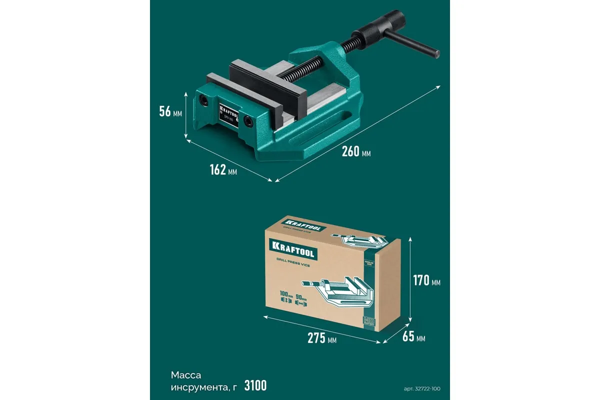 Тиски станочные сверлильные KRAFTOOL 32722-100 предназначены для надежного закрепления деталей при их механической обработке на фрезерных, сверлильных, шлифовальных и других станках. Обеспечивают длительную и качественную работу. Профессиональный станочный инструмент для надёжного закрепления деталей при их механической обработке на фрезерных, сверлильных, шлифовальных и других станках.