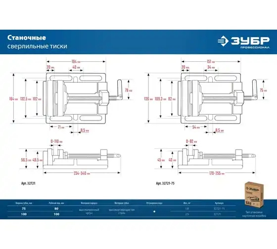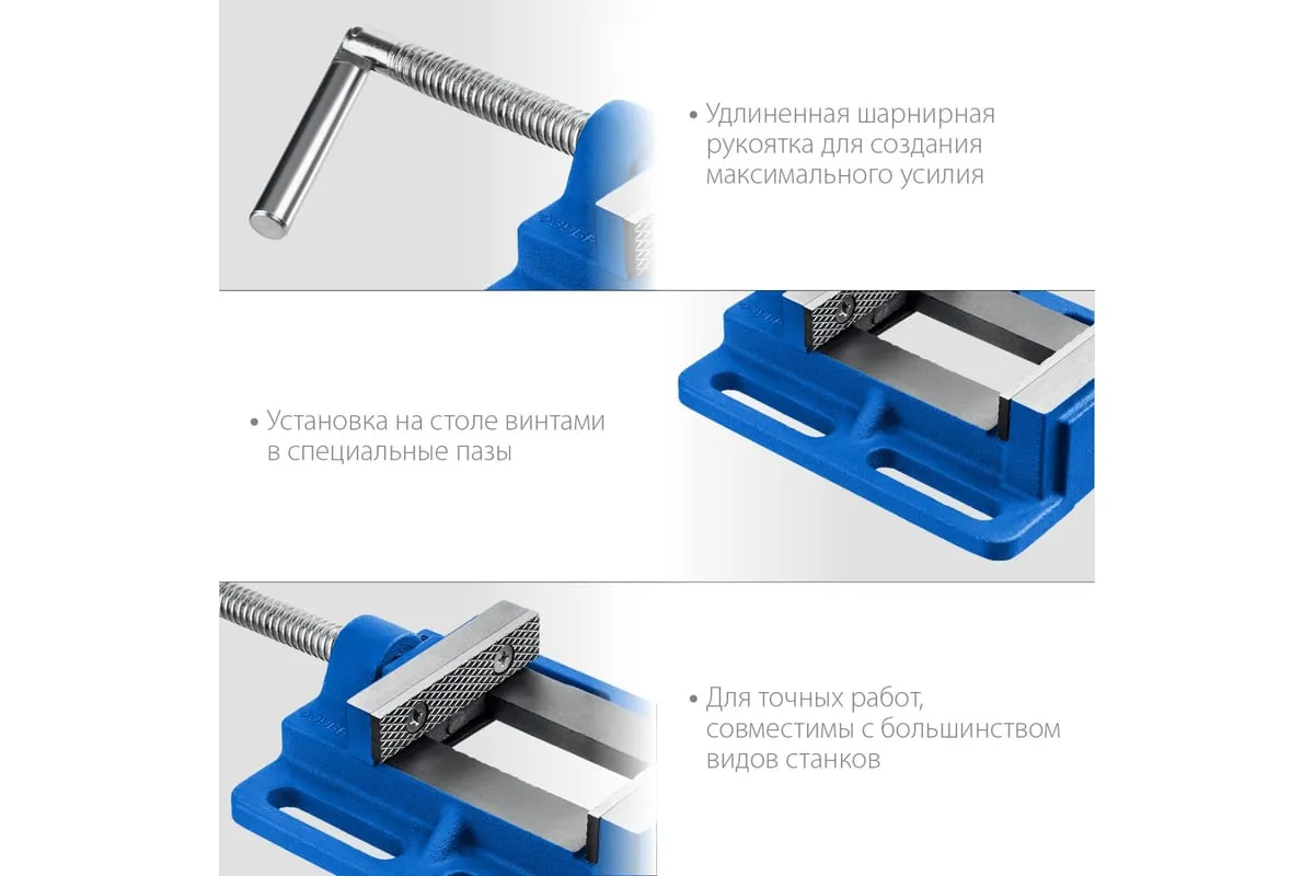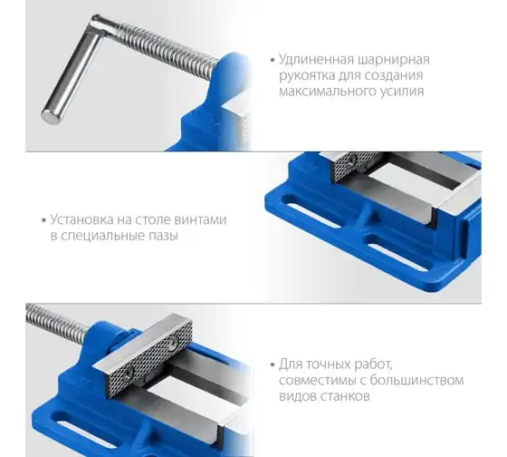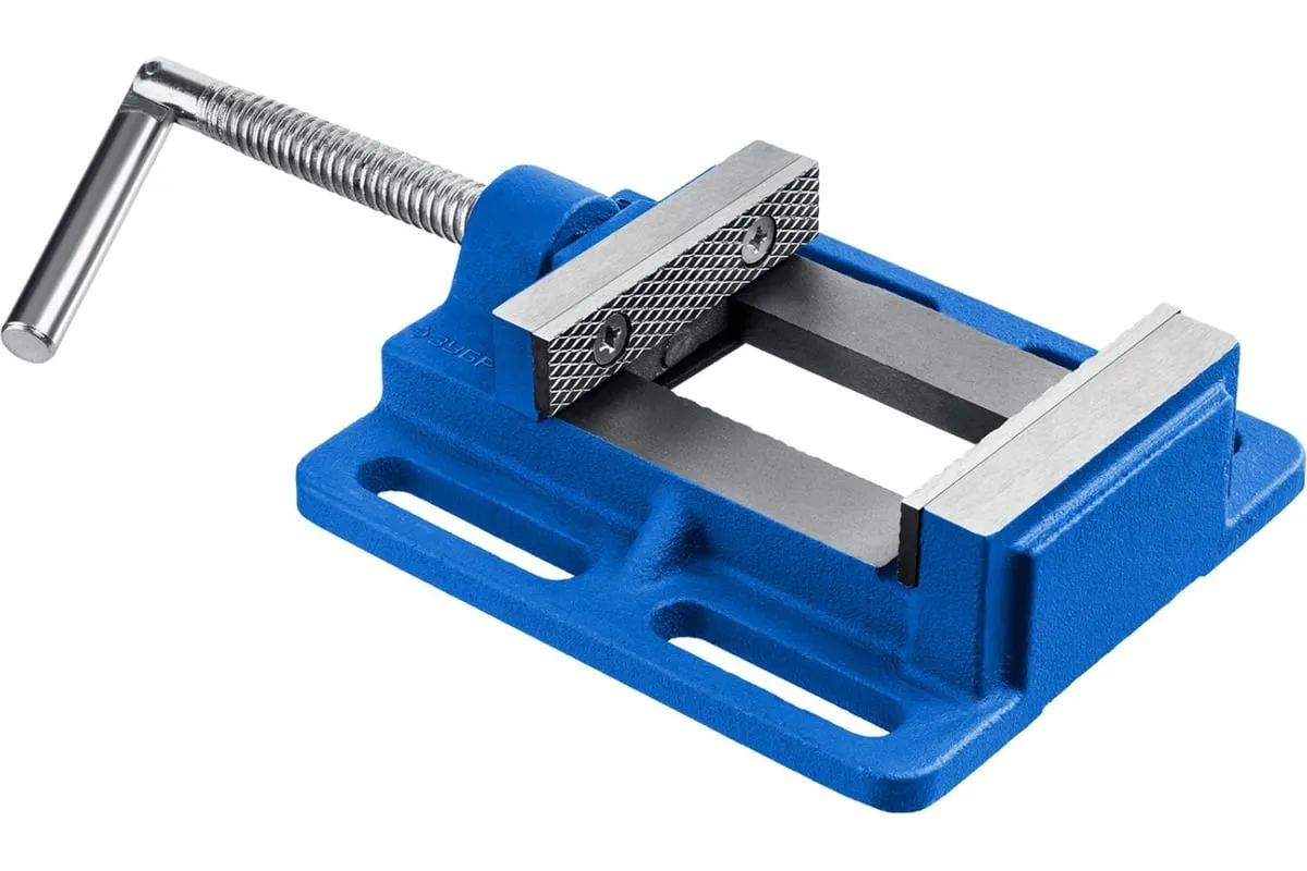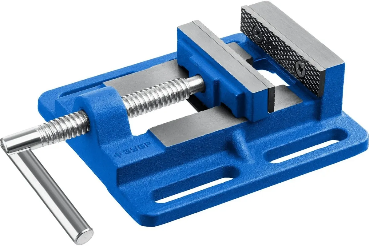 Станочные сверлильные тиски ЗУБР 75 мм 32721-75 предназначены для надежного закрепления деталей при выполнении точных слесарных работ. Тиски изготовлены из специального высокопрочного чугуна и соответствуют самым высоким техническим требованиям. Установка тисков на столе осуществляется с помощью винтов и гаек, для чего в основании предусмотрены пазы для крепления к поверхности. Сменные губки изготовлены из высококачественной стали, закалённой до 45-52 HRC и отшлифованы. На рабочую поверхность губок нанесены рифления для надёжного и безопасного крепления деталей. Шарнирная рукоятка.