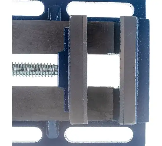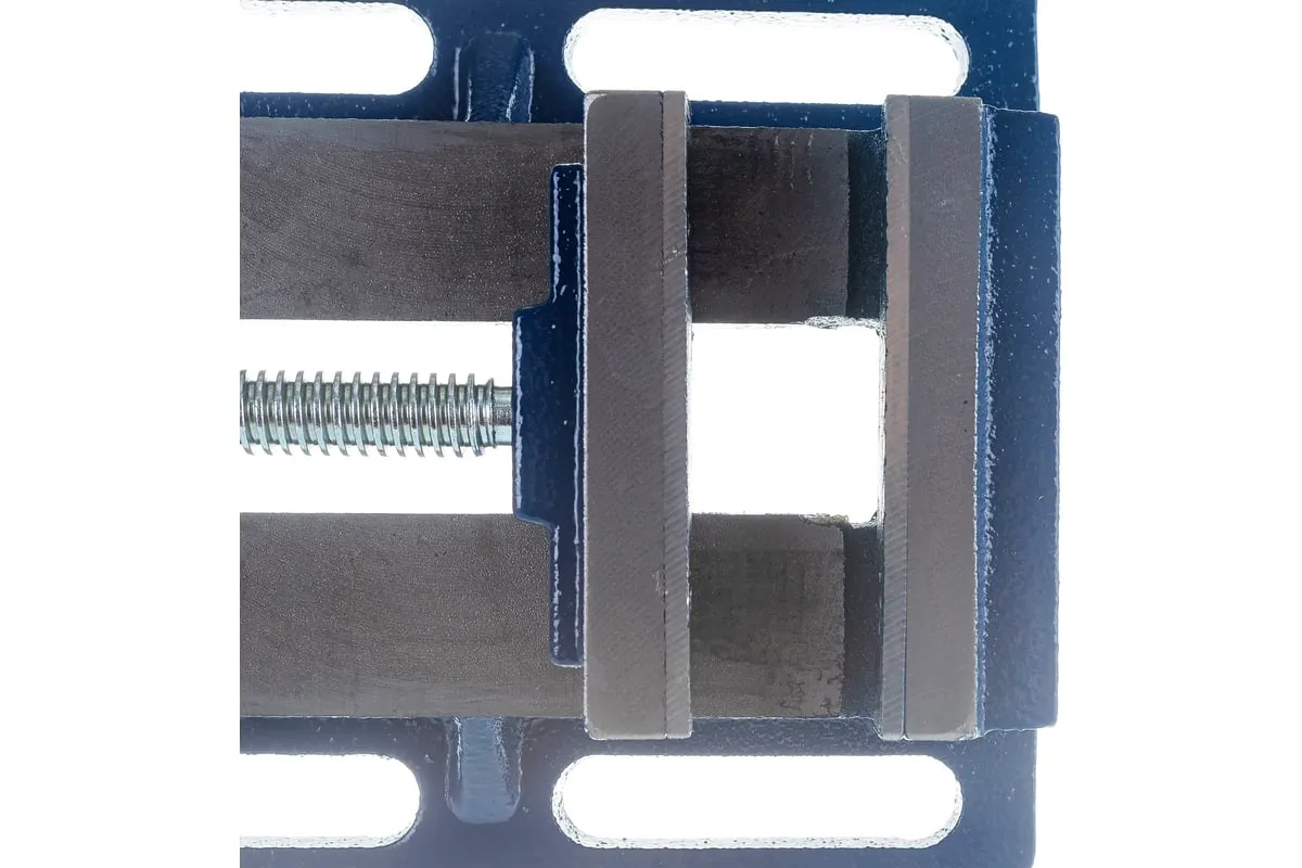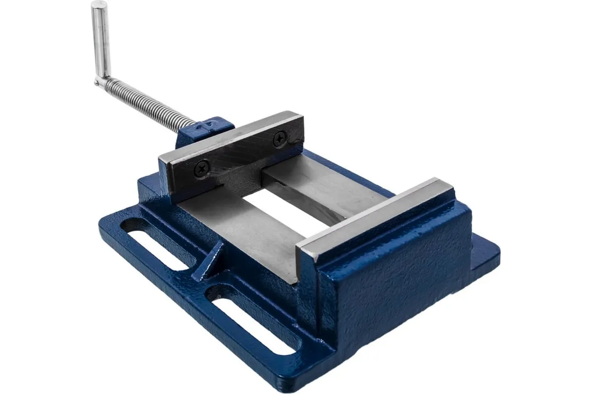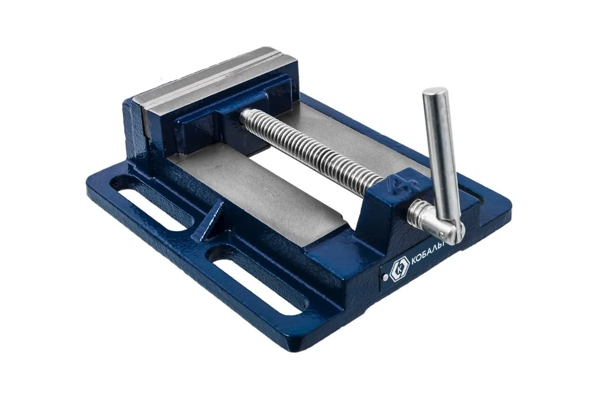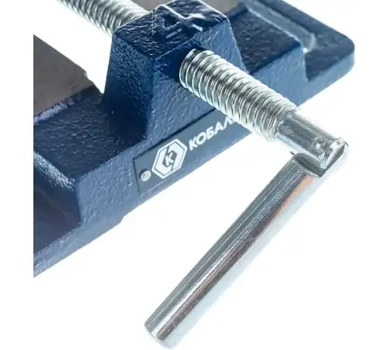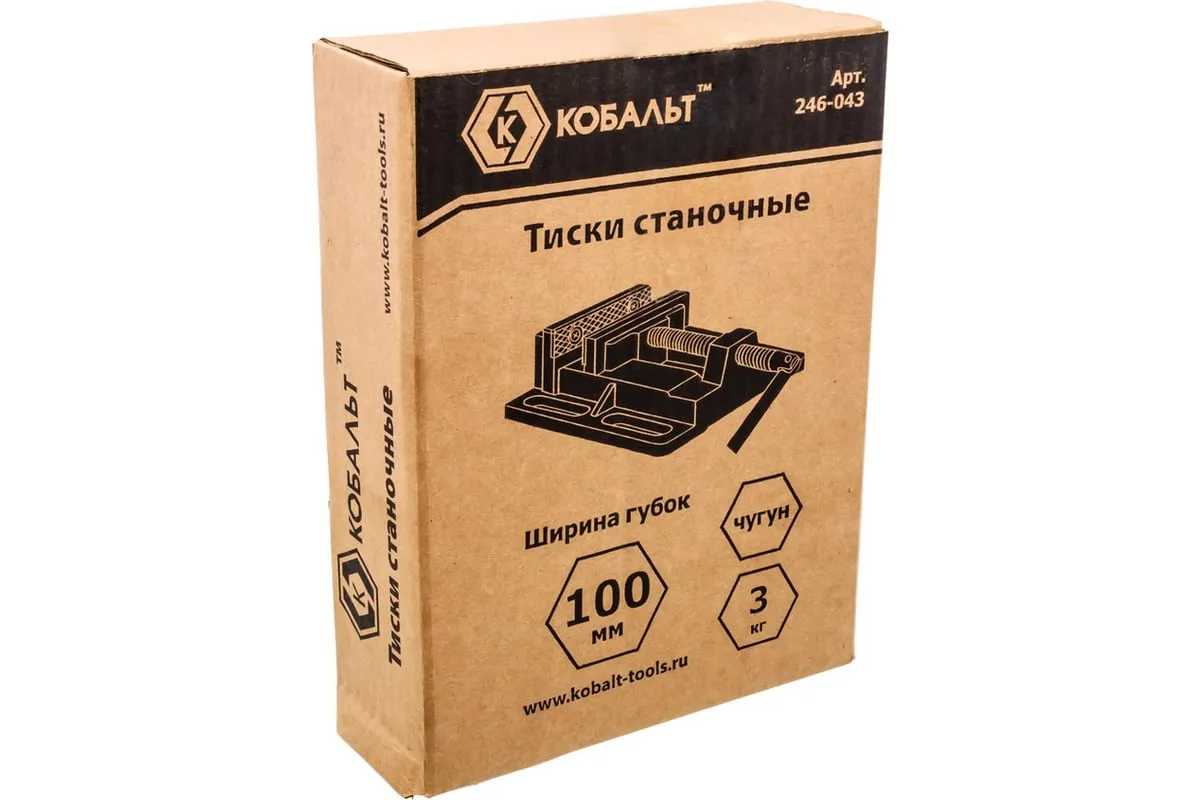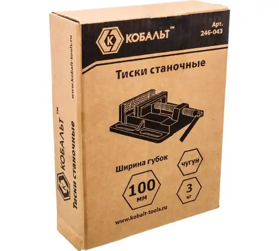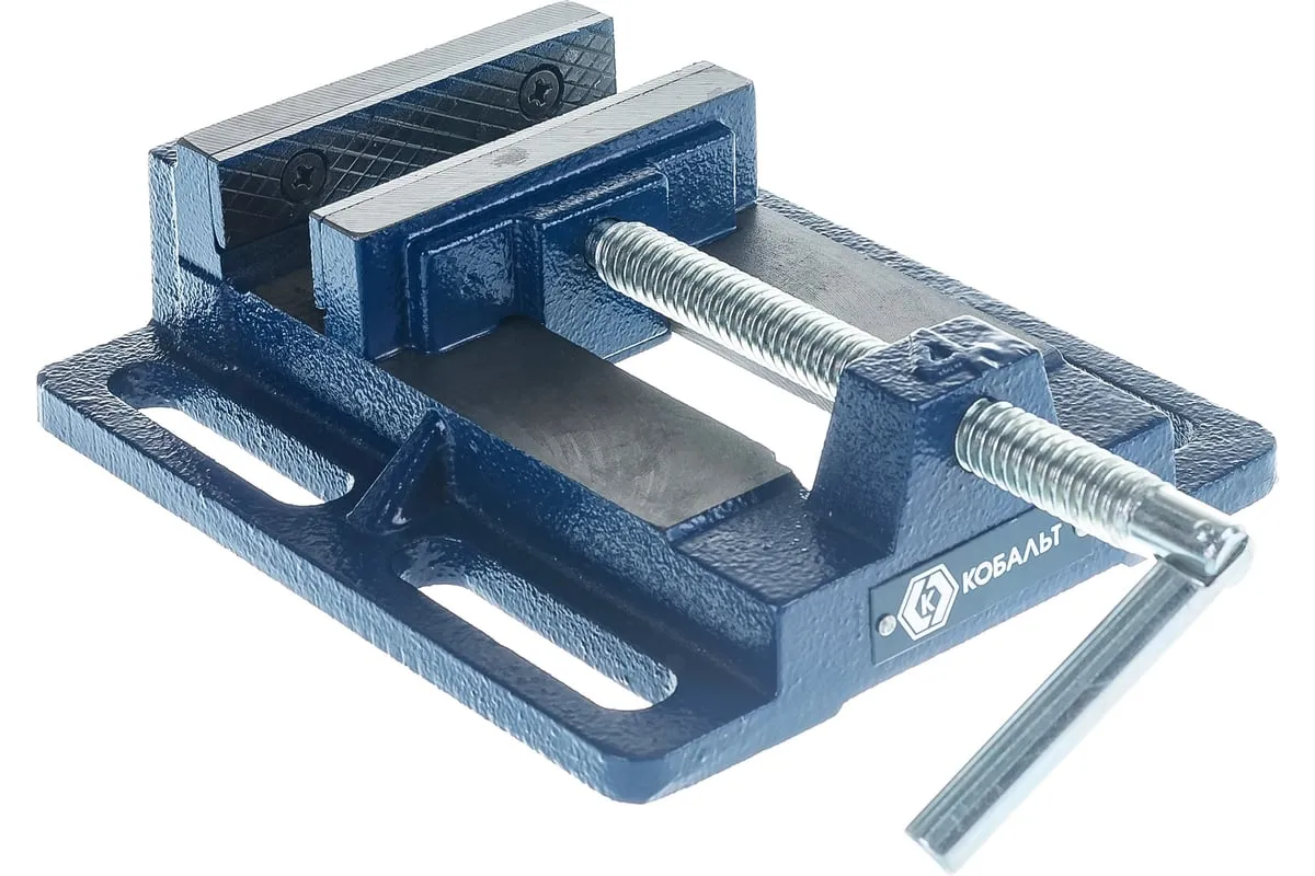 Станочные тиски КОБАЛЬТ 246-043 - приспособление для фиксации обрабатываемой детали на сверлильном или фрезерном станке. Материал изготовления - чугун. Плавное перемещение подвижной губки осуществляется поворотом шарнирной рукояти. В основании предусмотрены посадочные пазы - для надежного крепления тисков к станку. В качестве материала винта выступает углеродистая конструкционная сталь.