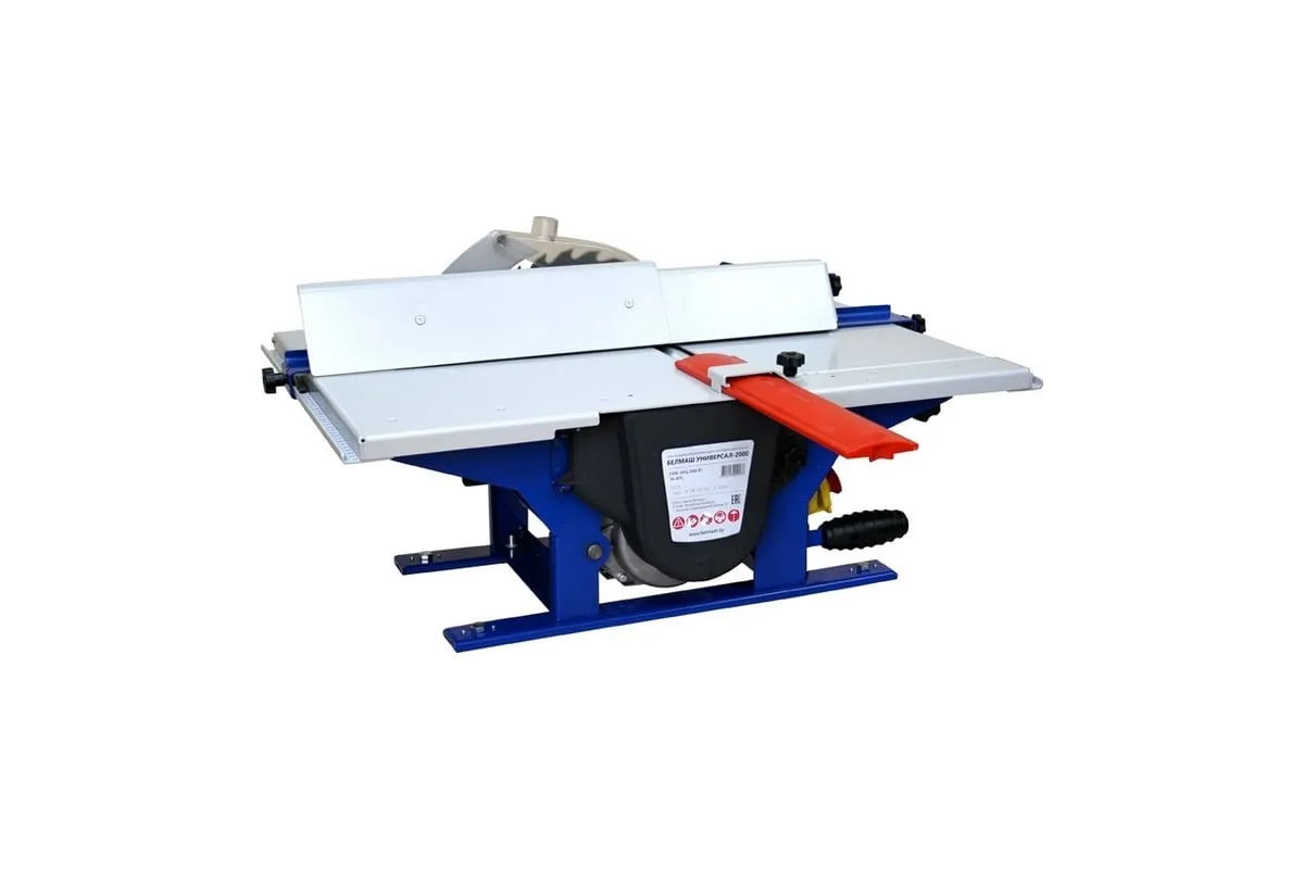 Станок Белмаш МАСТЕР-УНИВЕРСАЛ-2000 СДМУ-2000 успешно справляется с такими производственными задачами, как распил деталей вдоль, поперек и под углом и строгание досок по кромкам и под углом. В качестве оснастки используются пильные диски диаметром до 250 мм. Рабочая поверхность стола имеет габариты 700х474 мм. Модель широко используется в небольших мебельных мастерских и в условиях частного хозяйства.