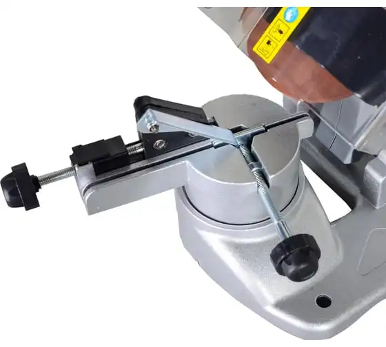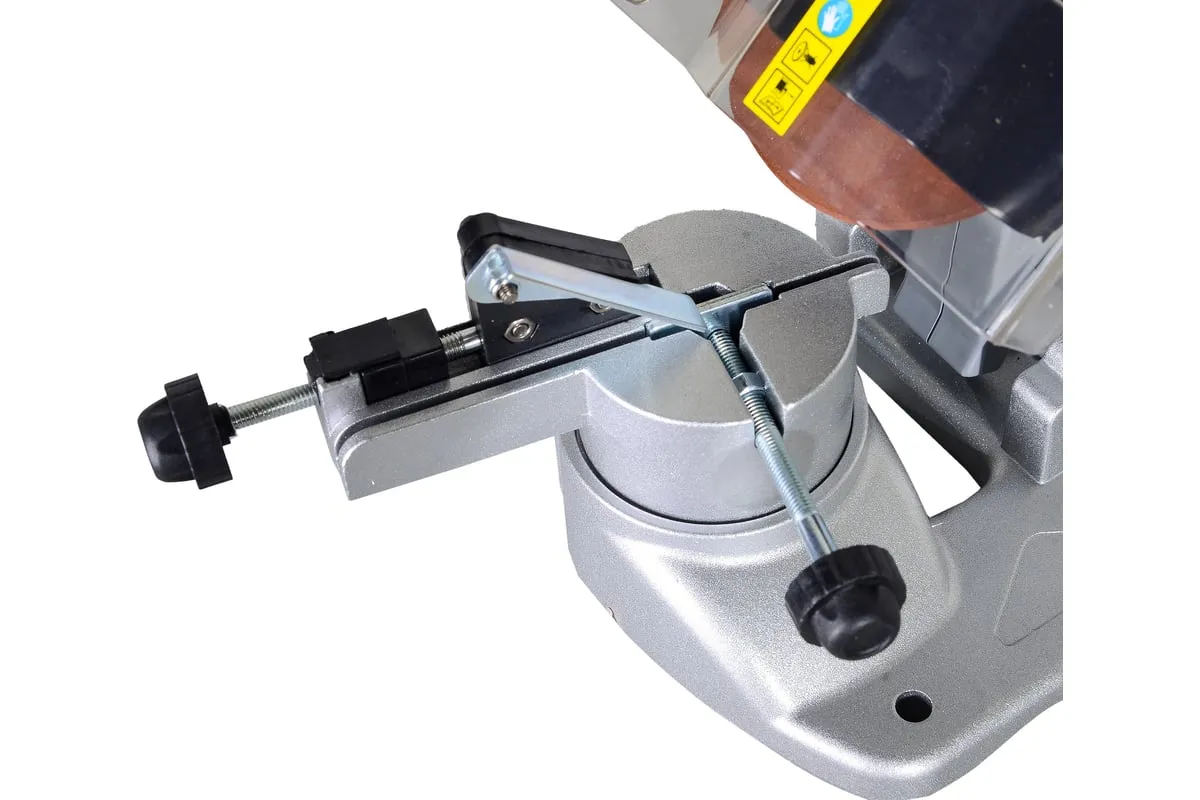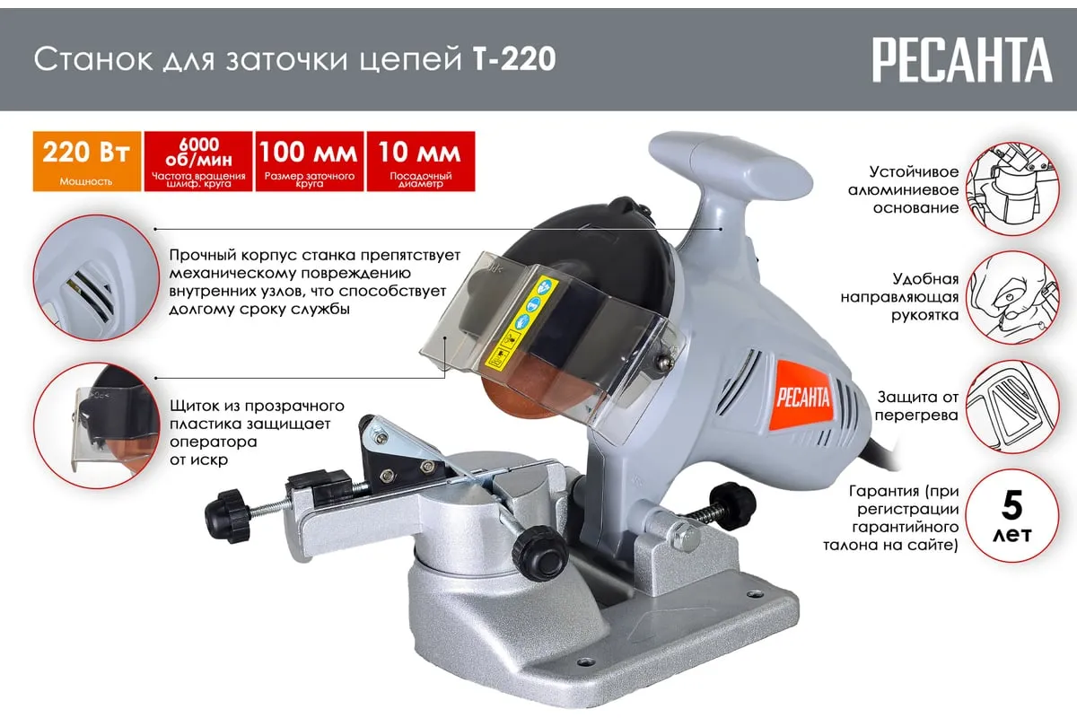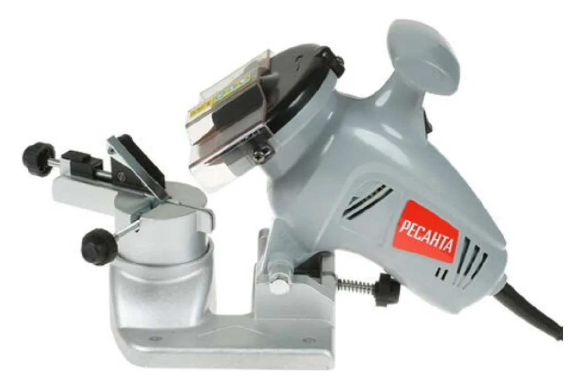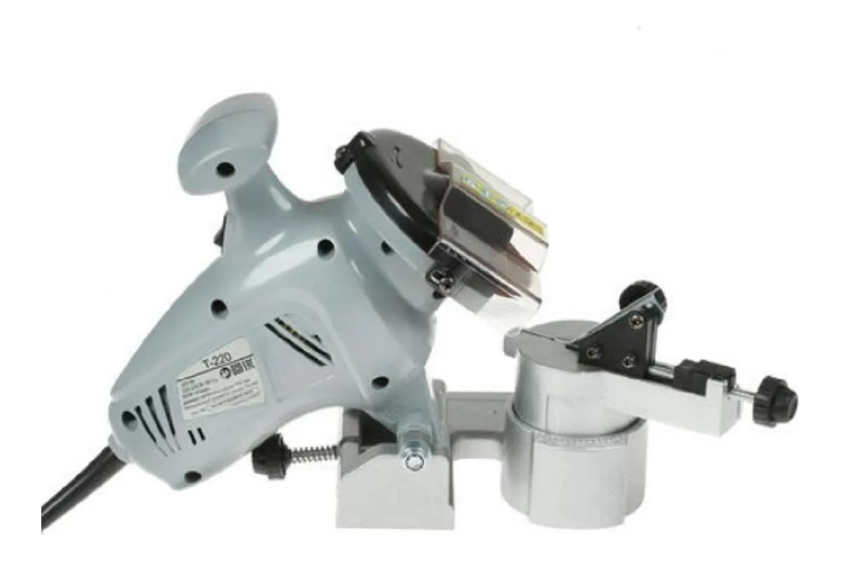 Станок для заточки цепей оснащен прозрачным пластиковым экраном, защищающим от распространения искр в процессе использования. При этом видимость полностью сохраняется. Точность заточки цепи регулируется с помощью зажима. Настройку механизмов обеспечивают регулировочные винты. Основание корпуса станка для заточки цепей выполнено из алюминия, устойчивого к коррозии и механическим повреждениям. Наличие рукоятки облегчает процесс использования. В комплектацию входит заточный круг и набор ключей. Вес прибора 2 кг и малые габариты обеспечивают удобство транспортировки и компактность хранения.