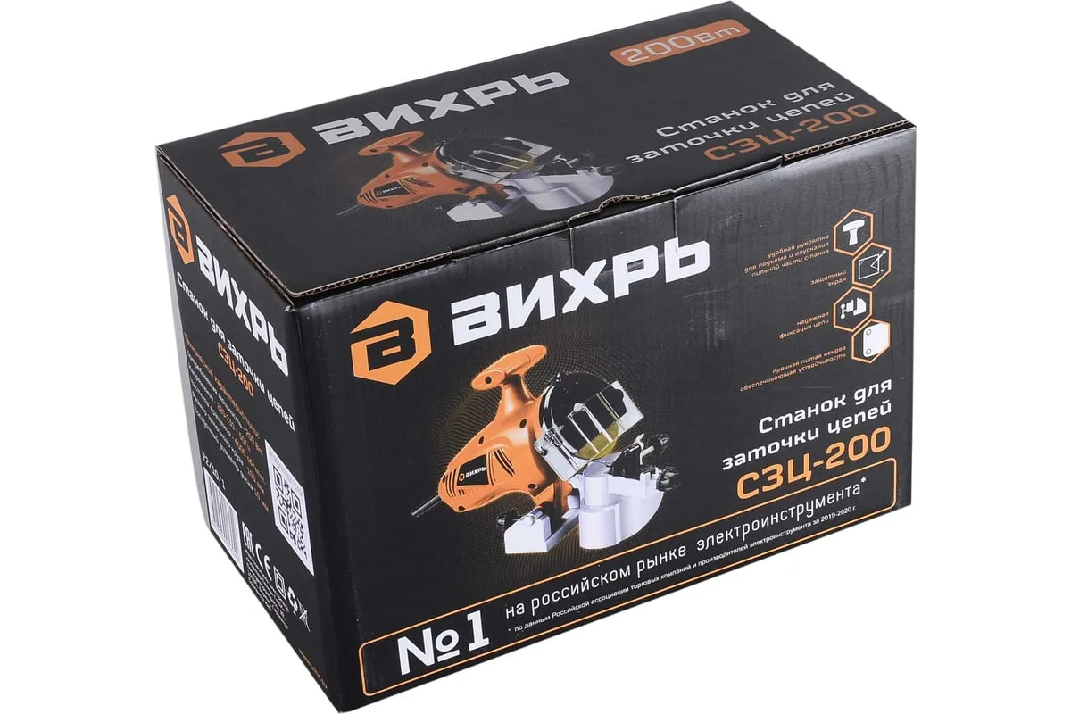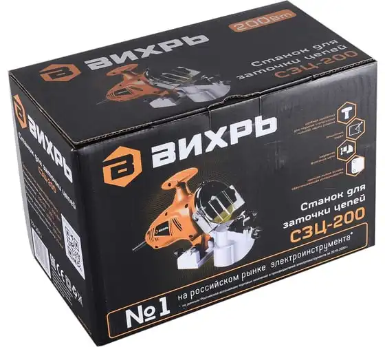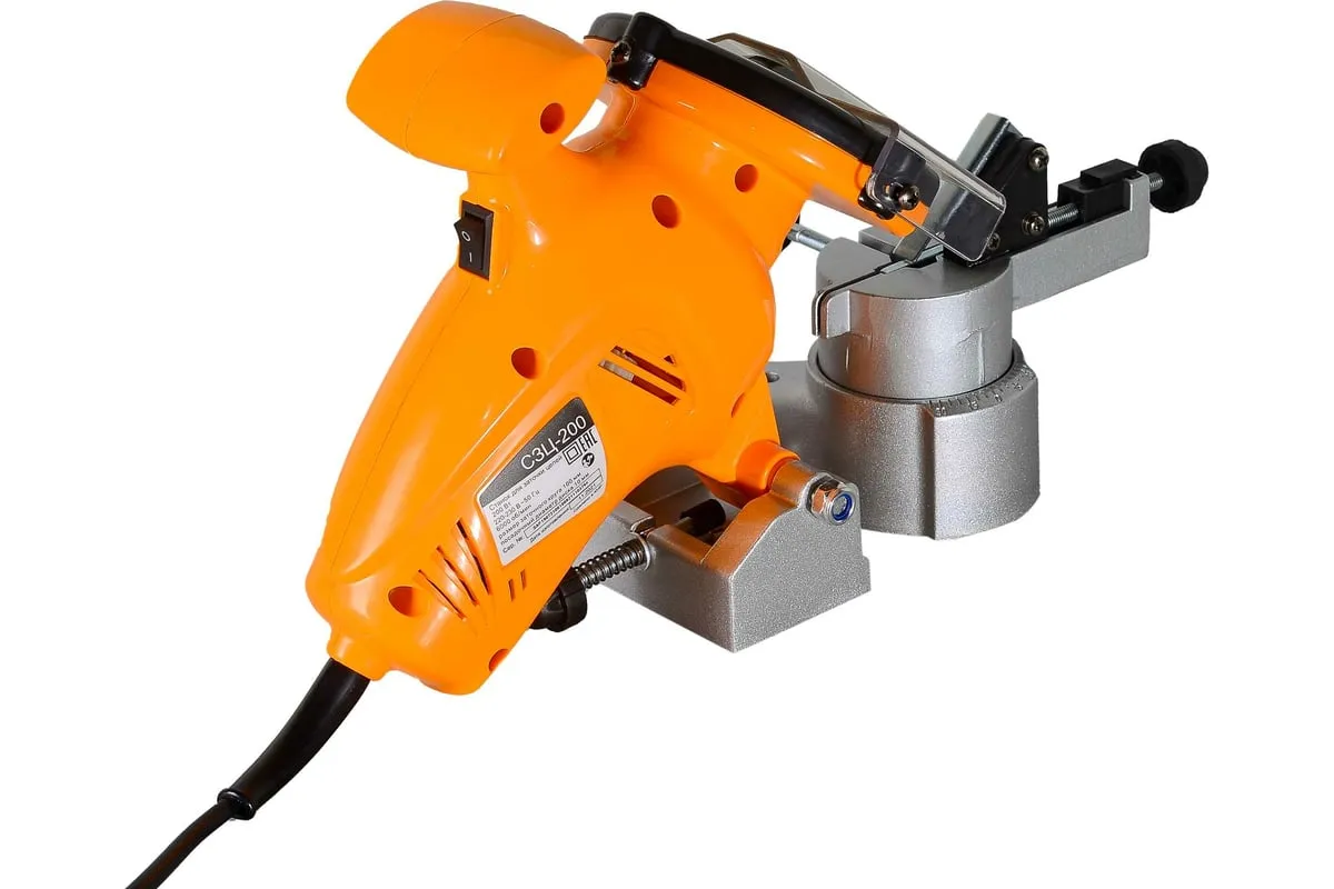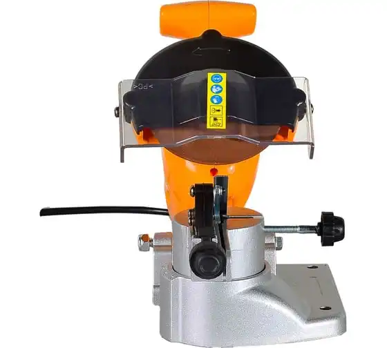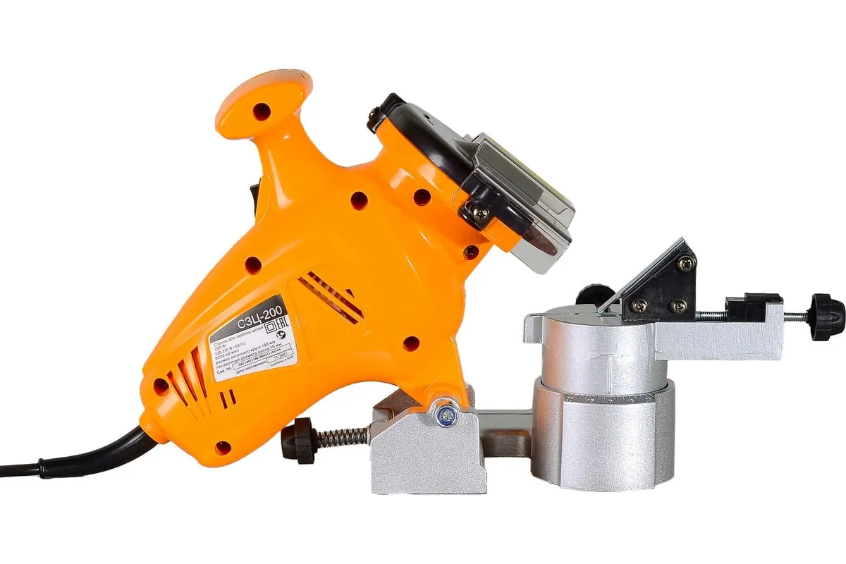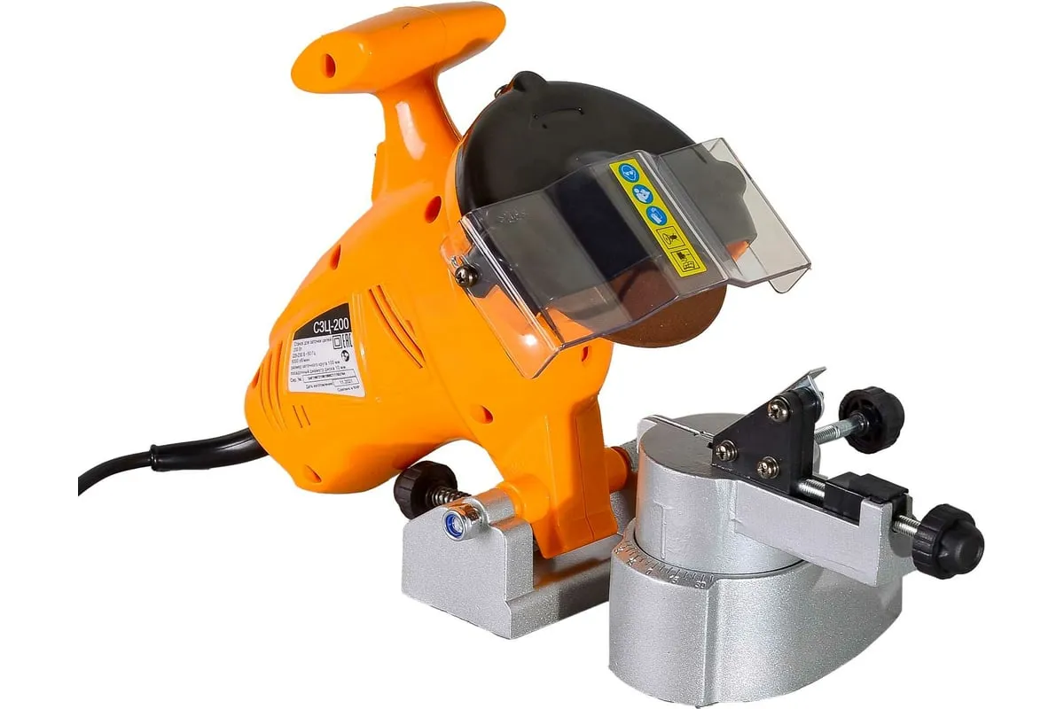 Станок для заточки цепей отличается продуманной конструкцией и компактными размерами, комплектуется эргономичной ручкой, которая существенно упрощает использование приспособления. Высокую производительность обеспечивает двигатель мощностью 200 Вт. Также модель оснащена защитным экраном для повышения безопасности во время работы. Он легко откидывается при необходимости. Корпус станка имеет вентиляционные отверстия, через которые отводится нагретый воздух, что предупреждает перегрев инструмента и его преждевременный выход из строя. Среди особенностей станка стоит отметить наличие ограничителя глубины.