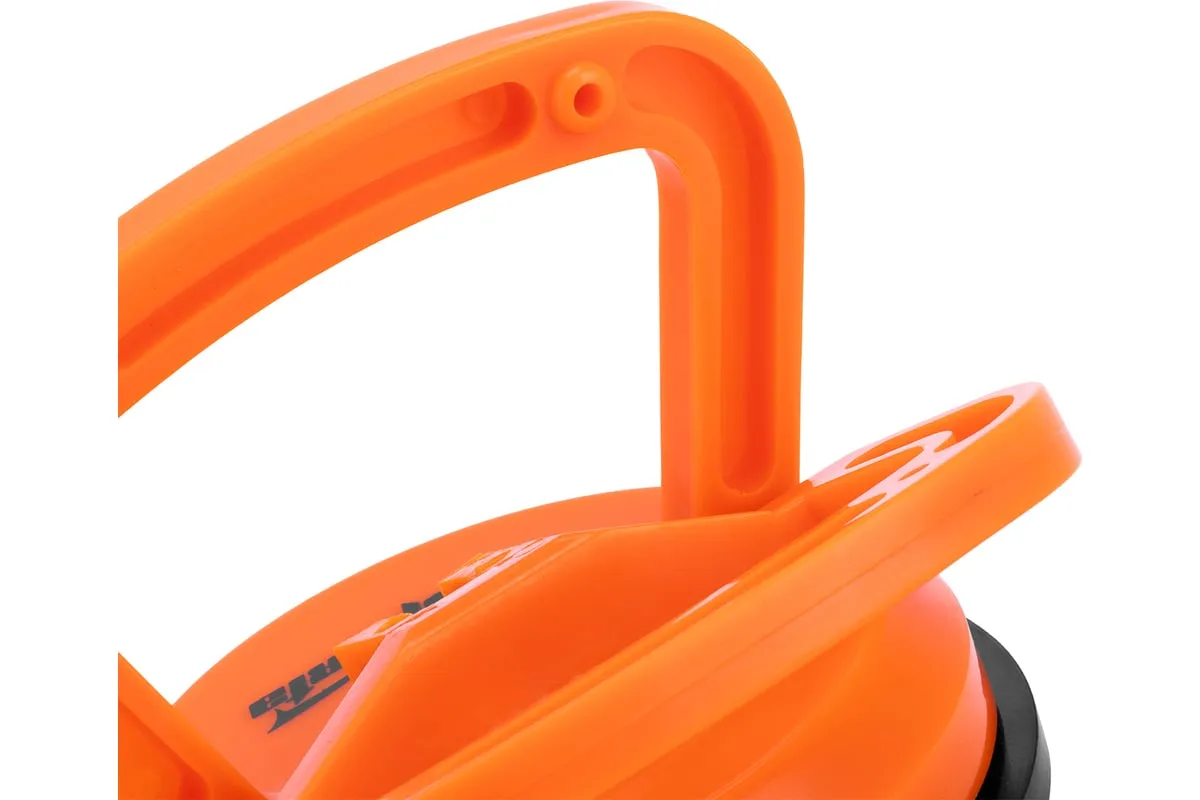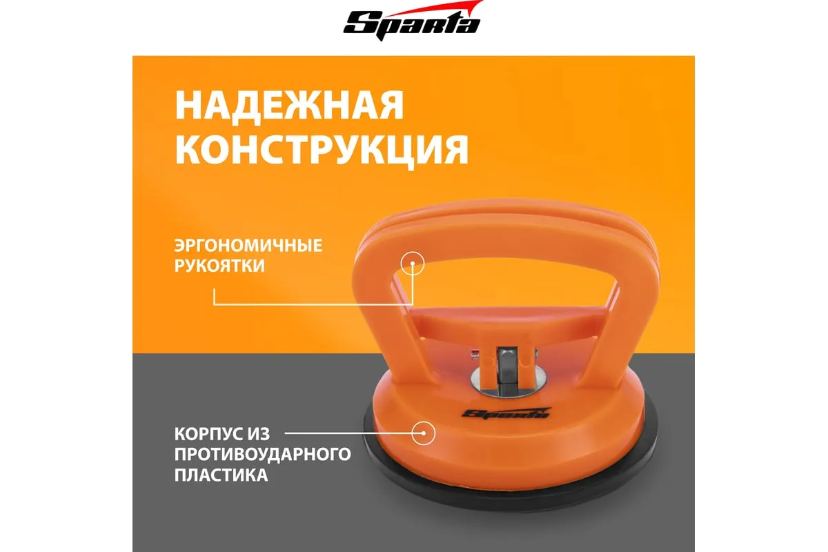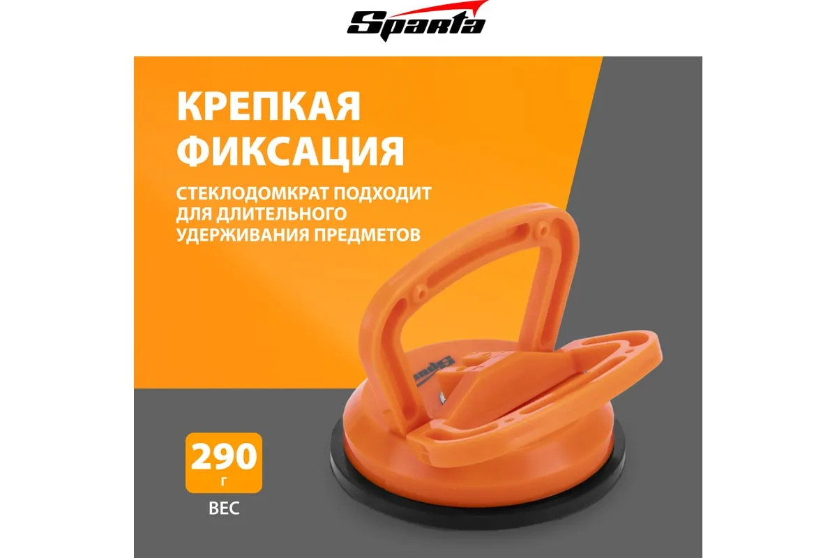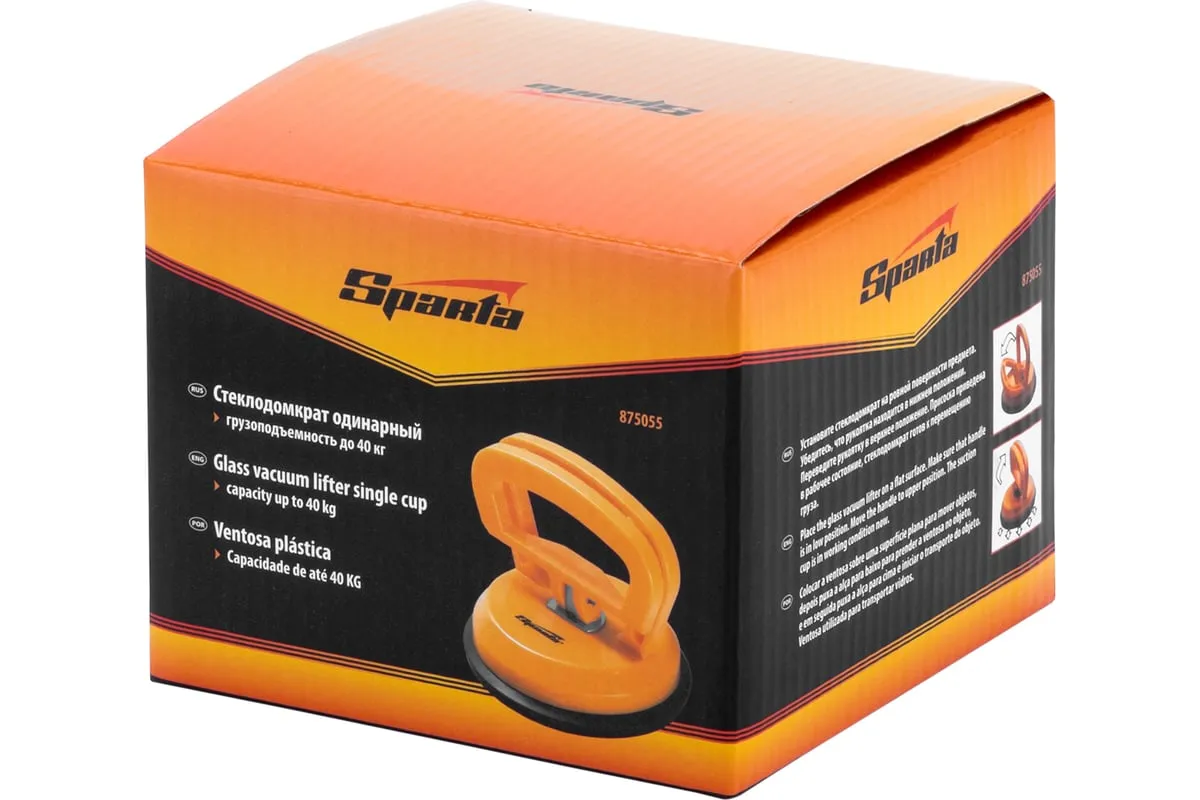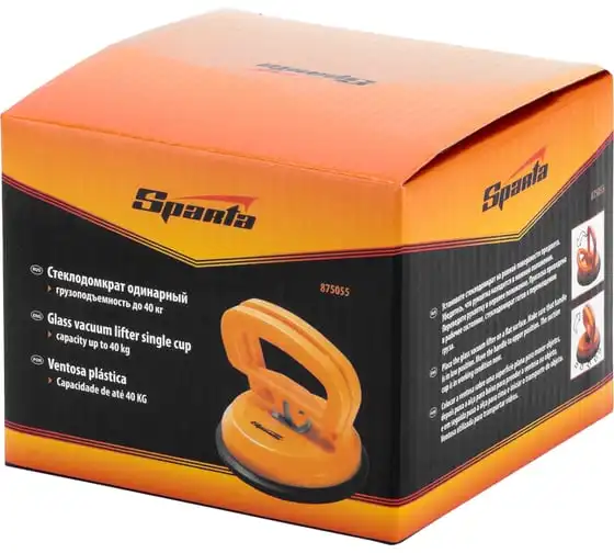 Одинарный стеклодомкрат Sparta 875055 служит для захвата, удержания и перемещения стекол, зеркал, кафельной плитки и других гладких материалов весом до 40 кг. Имеет вакуумную присоску, которая после складывания рукоятки бережно прижимается к чистой сухой поверхности и прочно фиксируется на ней. Инструмент пригодится во время ремонтных и отделочных работ.