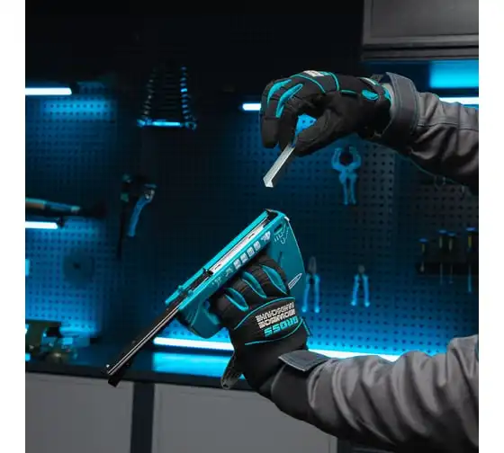 Функция двухпозиционной регулировки силы удара позволяет работать с тонкими материалами, не повреждая их. При помощи удлиненного носика можно забивать скобы в труднодоступных местах. Степлер рекомендован для профессионального применения, но будет полезен и в быту.