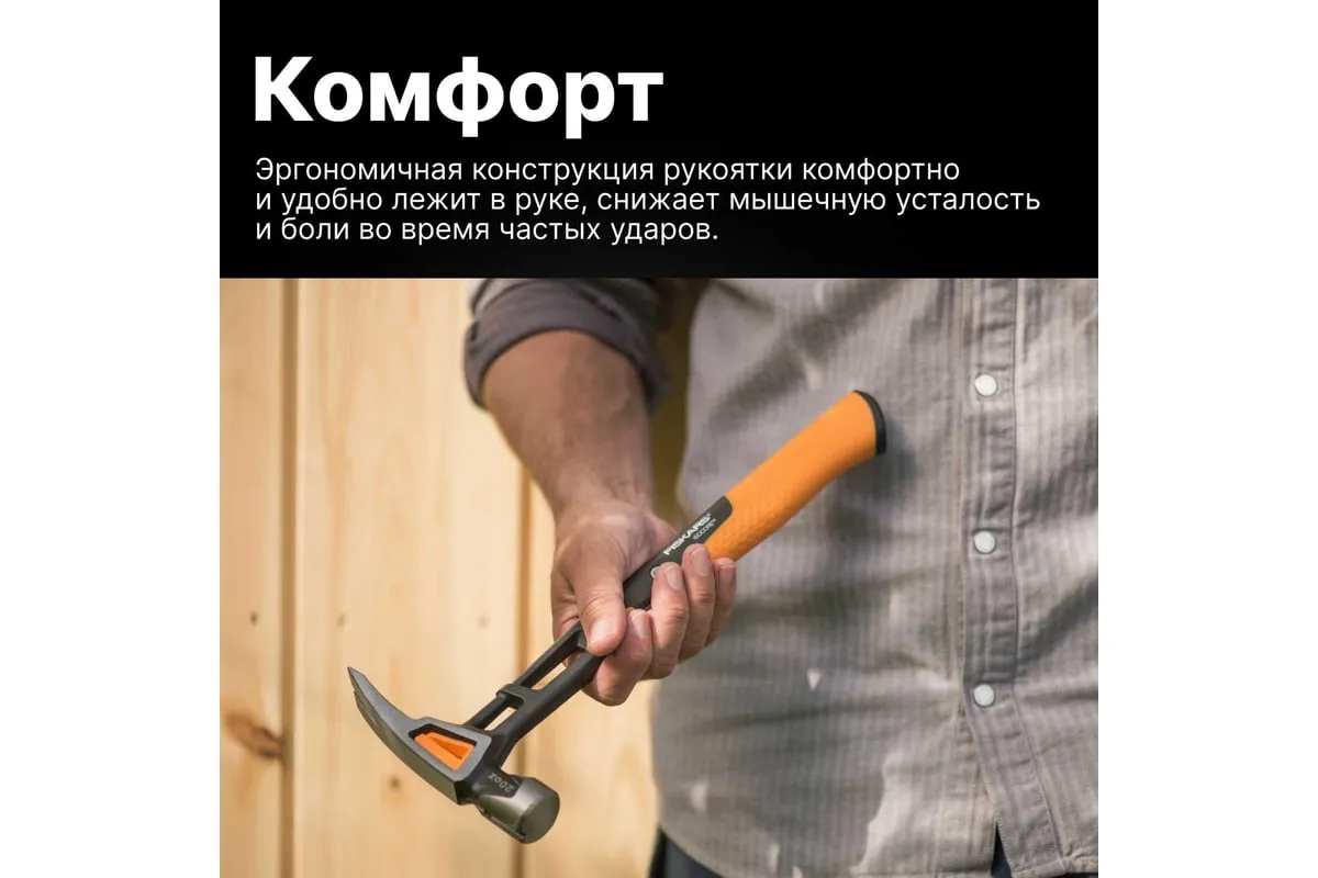 Молоток Столярный молоток Fiskars 20oz/13.5" 1020214 предназначен для выполнения ударных работ в сфере столярно-слесарного дела, есть магнитная канавка для гвоздей. Также он используется для извлечения гвоздей. Оптимальная геометрия рукоятки обеспечивает прочность, мощность и баланс. Покрытие SoftGrip способствует надежному захвату.