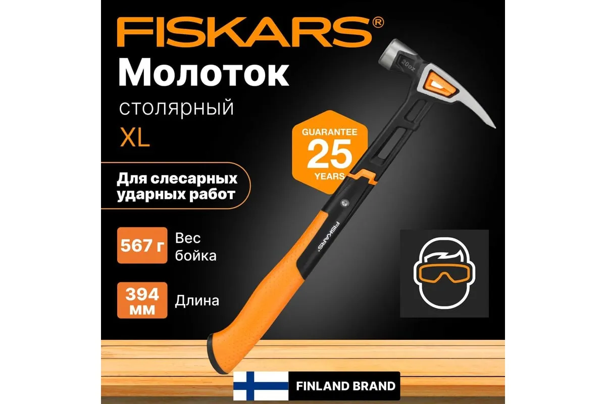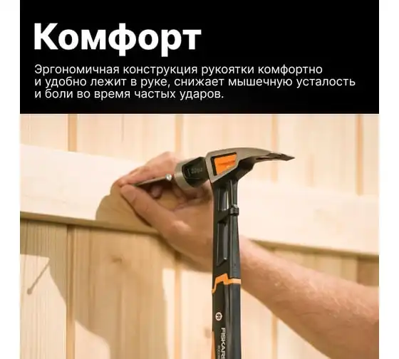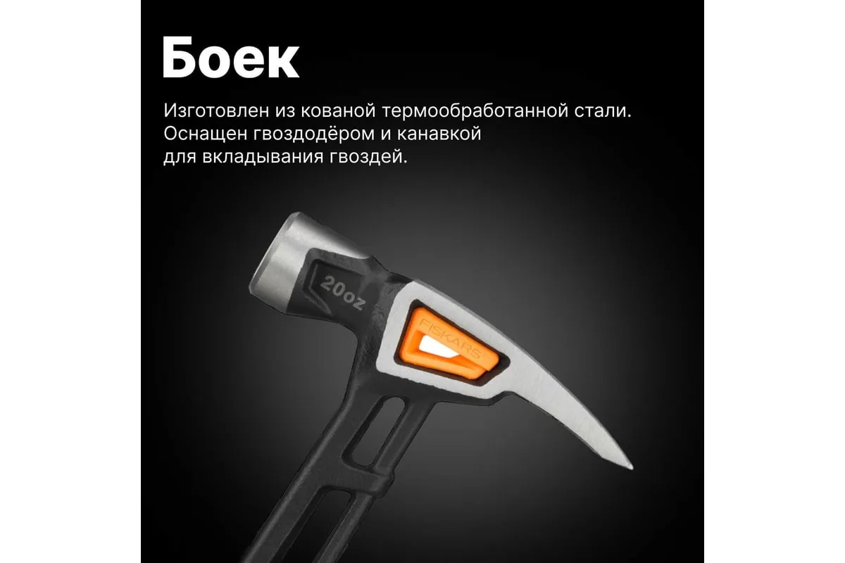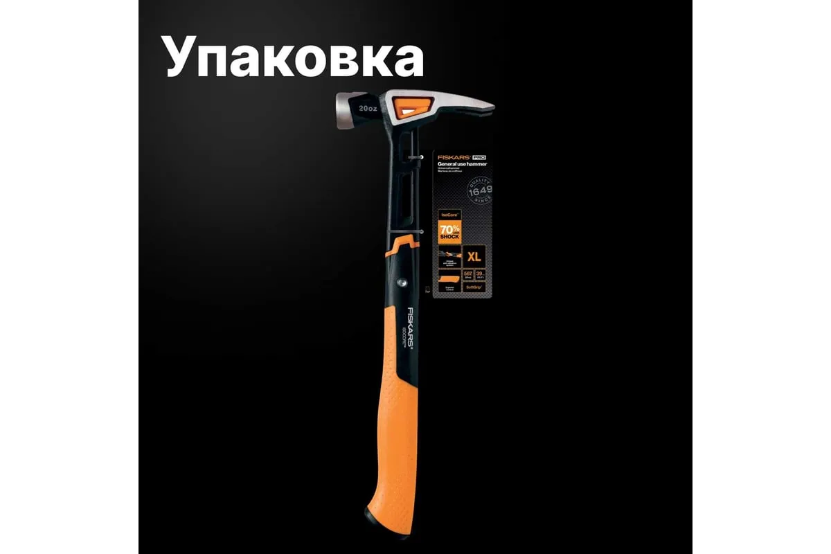 Столярный молоток Fiskars 20oz/15.5" 1020215 оснащен двухкомпонентной рукояткой с покрытием SoftGrip, что обеспечивает его надежное удержание. Изолирующая втулка и стальной стержень снижают вибрацию. Боек выполнен из кованной стали с нержавеющим покрытием, а также прошел термическую обработку. Благодаря этому срок службы выше.