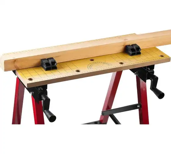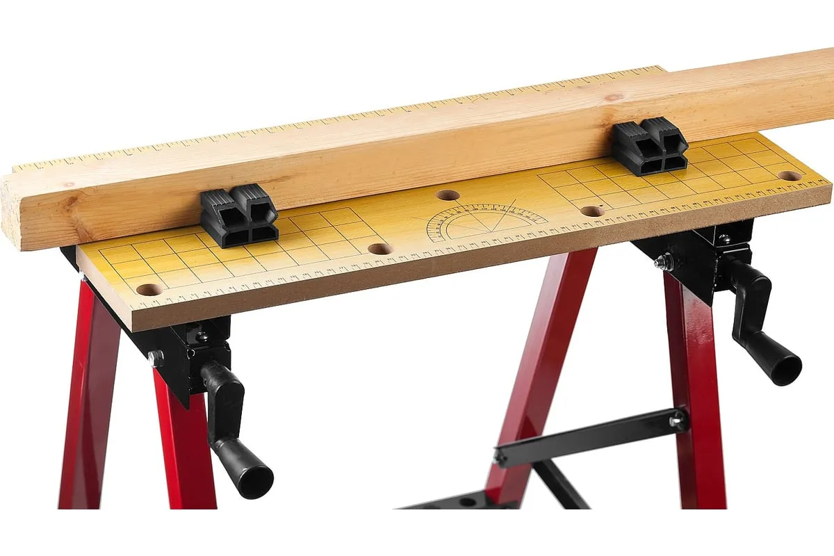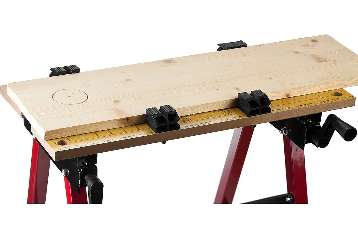 Столярный складной верстак ЗУБР М-3 38725 удобен в использовании за счет раздвижного рабочего стола. Регулировка ширины допускает работу с различными по типу деталями. Модель можно сложить на время хранения - так она становится максимально компактной. Столешница выполнена из МДФ и сдвигается при помощи двух резьбовых соединений по обе стороны стола. Для зажима деталей использованы пластиковые упоры - они не повреждают деталей.