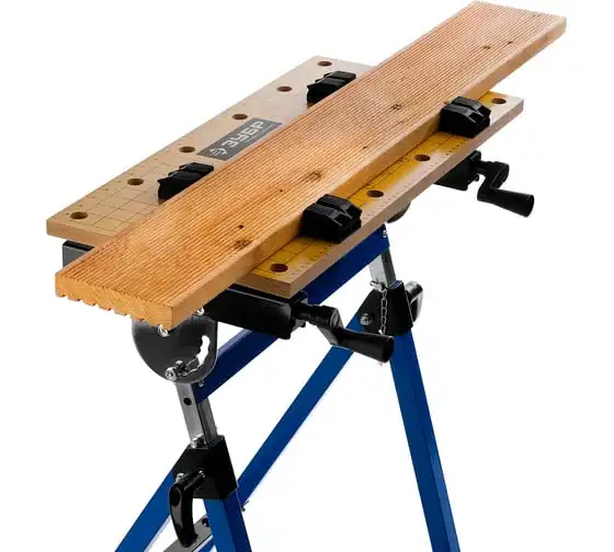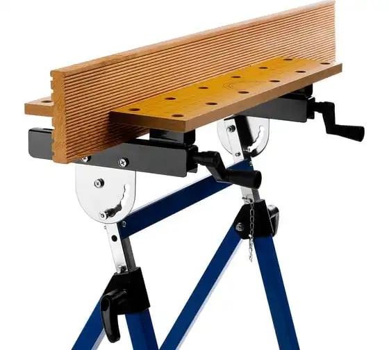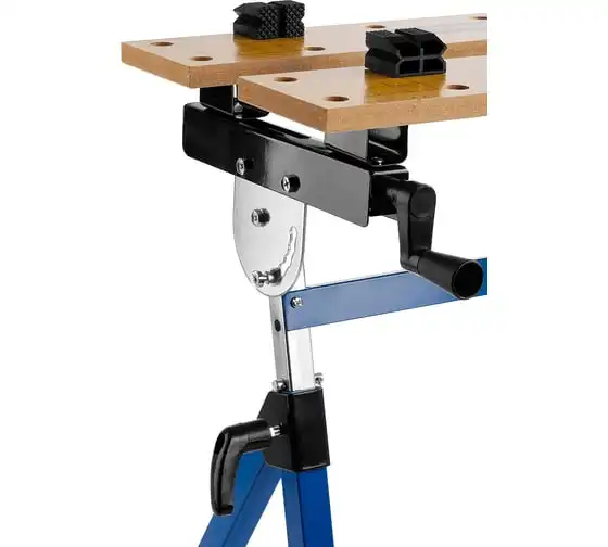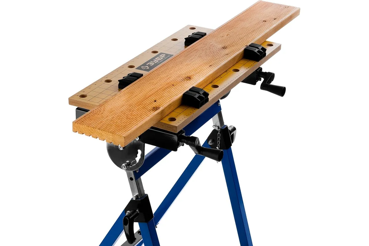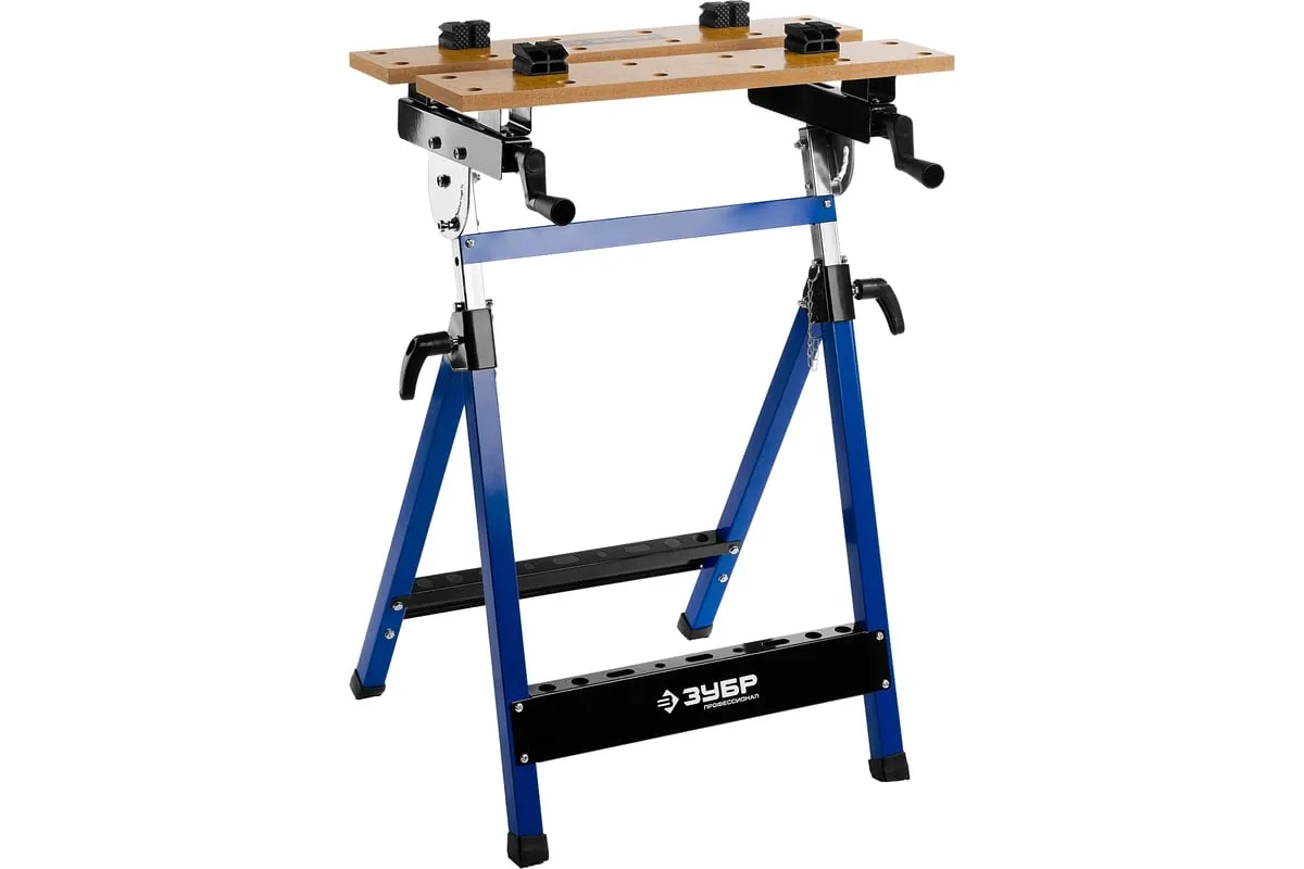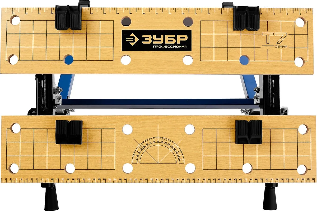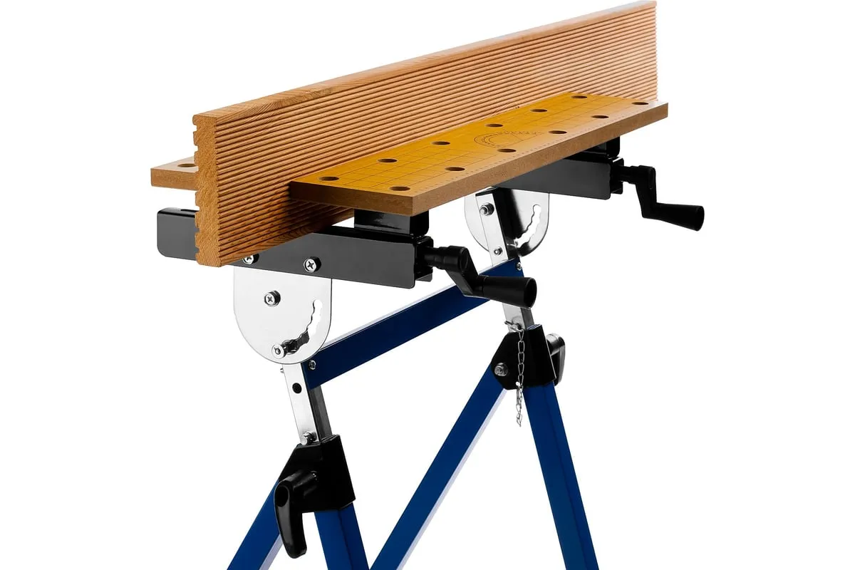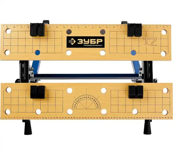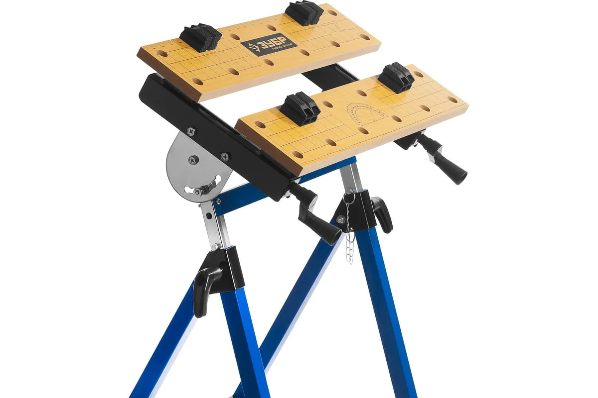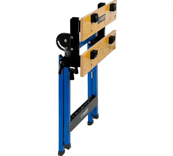 Столярный складной верстак ЗУБР T-7 Профессионал 38728 используют при выполнении небольших столярных и слесарных работ в мастерской и гараже. Положение подвижной части регулируется с помощью двух вращающихся рукояток. Перфорированная столешница оснащена специальными фиксаторами для надежного зажима заготовок различной формы в процессе их обработки. Регулировка по высоте обеспечивает максимальный комфорт эксплуатации. Верстак удобен в хранении и транспортировке благодаря складному каркасу. Размеры в сложенном виде 605х180х1000 мм.