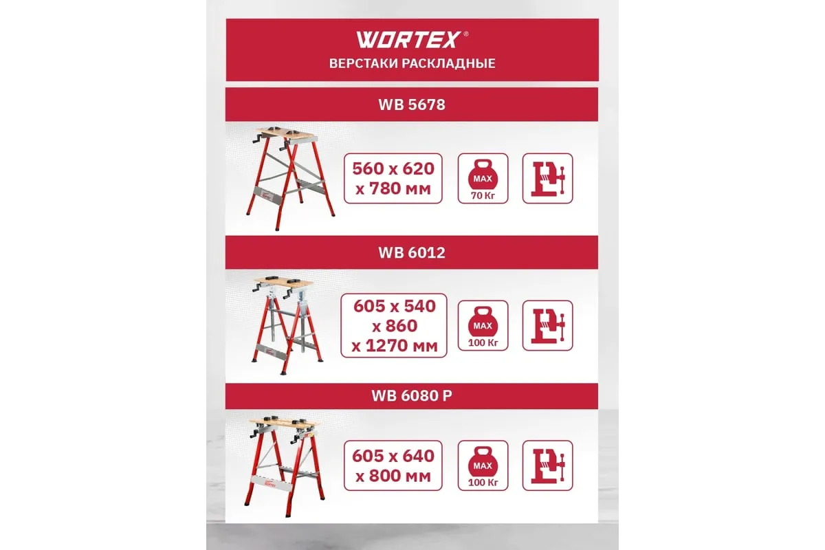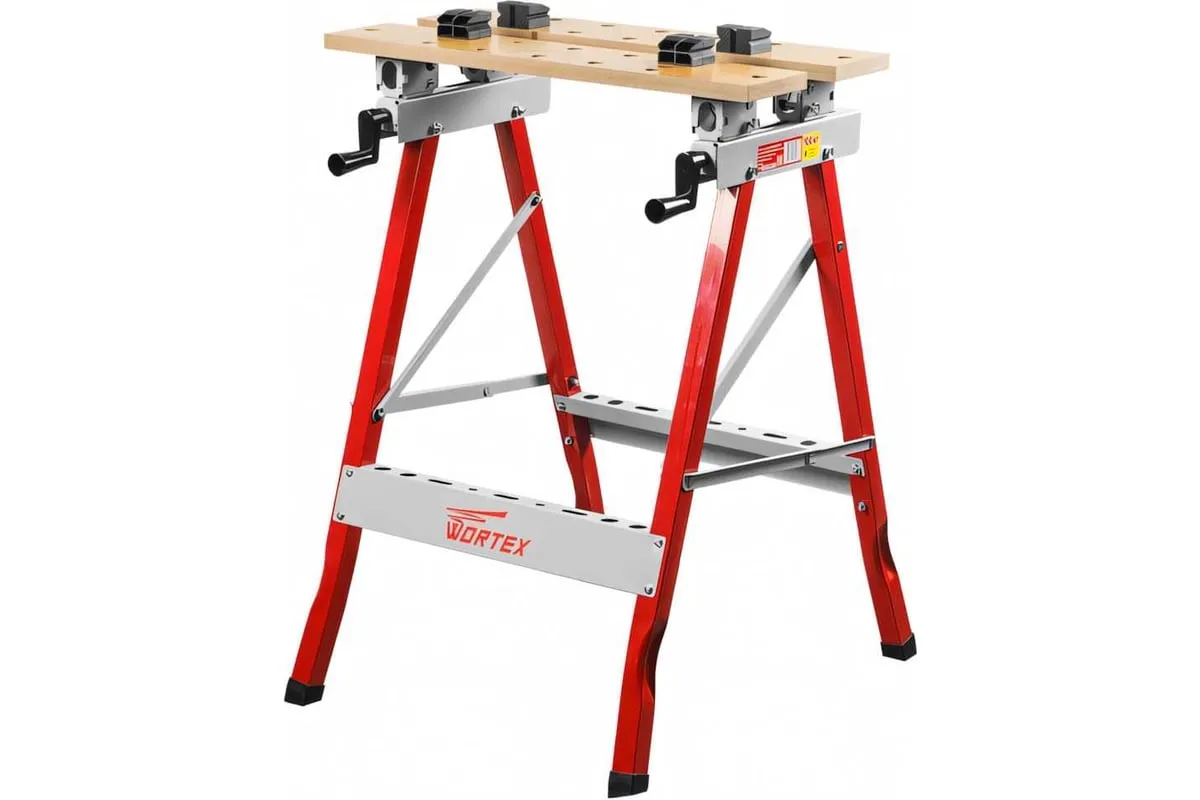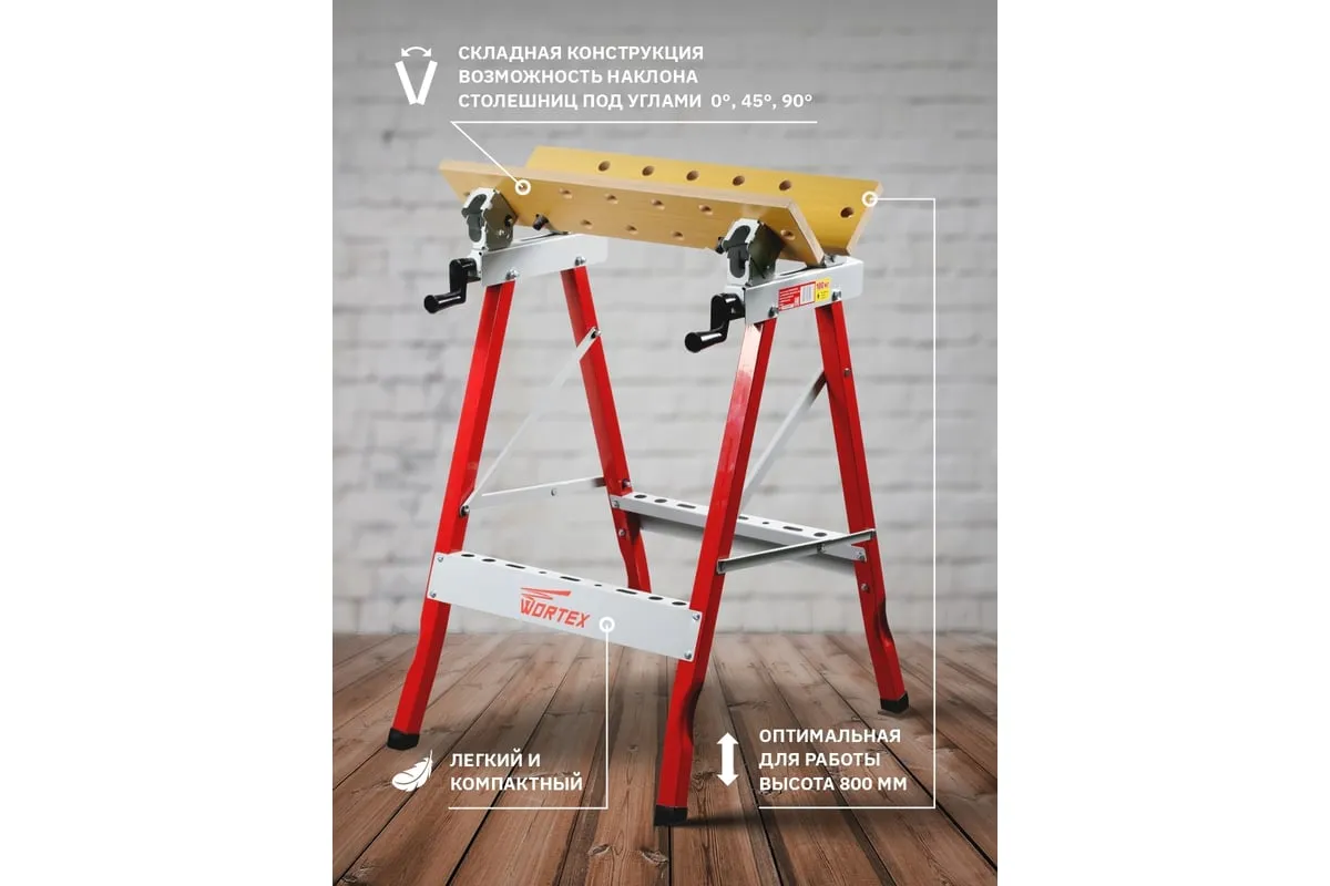 Столярный верстак WORTEX WB6080PB00011 предназначен для обработки различных заготовок. Столешница состоит из двух частей, которые поворачиваются на фиксированные углы 45 и 90 градусов, что делает возможным фиксацию круглых заготовок. Также предусмотрена функция тисков для дополнительного удобства.