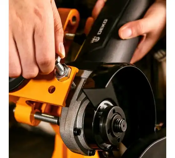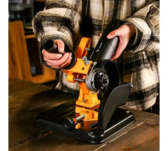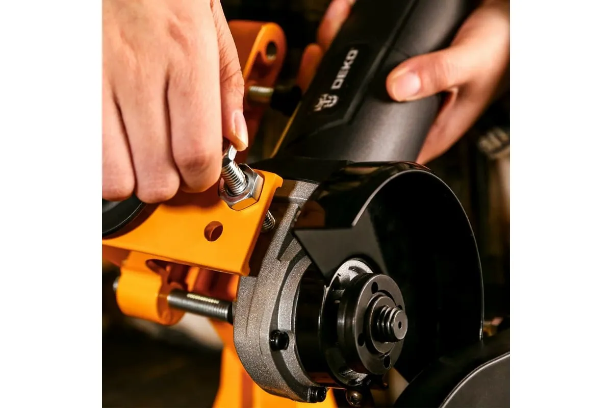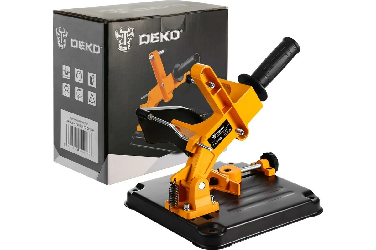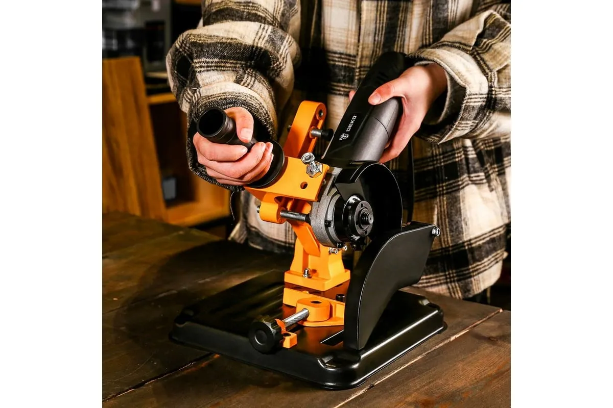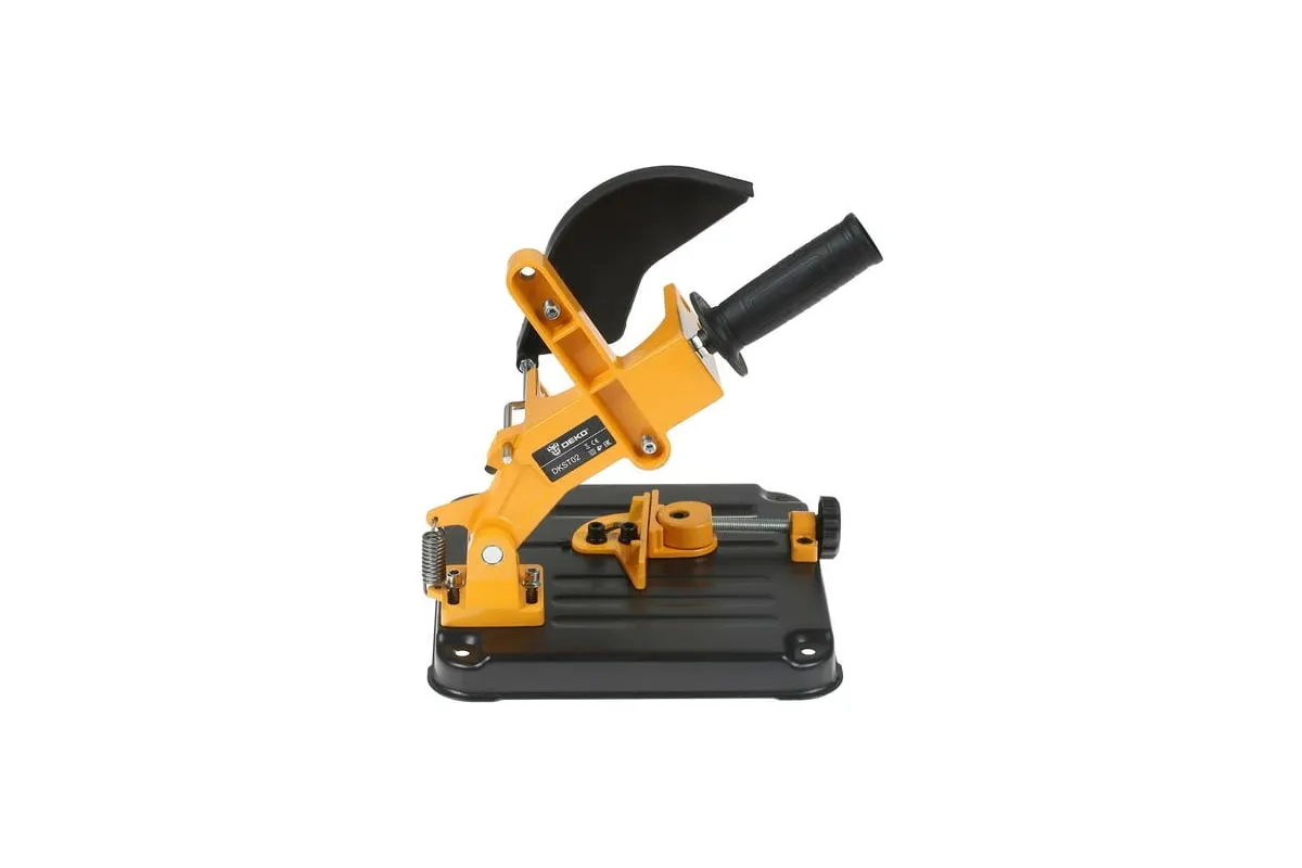 Стойка для УШМ DEKO DKST02- вспомогательное приспособление для углошлифовальных машин. Применяется для закрепления инструмента, превращая его в станок-монтажную пилу. Конструкция предусматривает встроенные тиски, которые позволяют закрепить обрабатываемую заготовку.