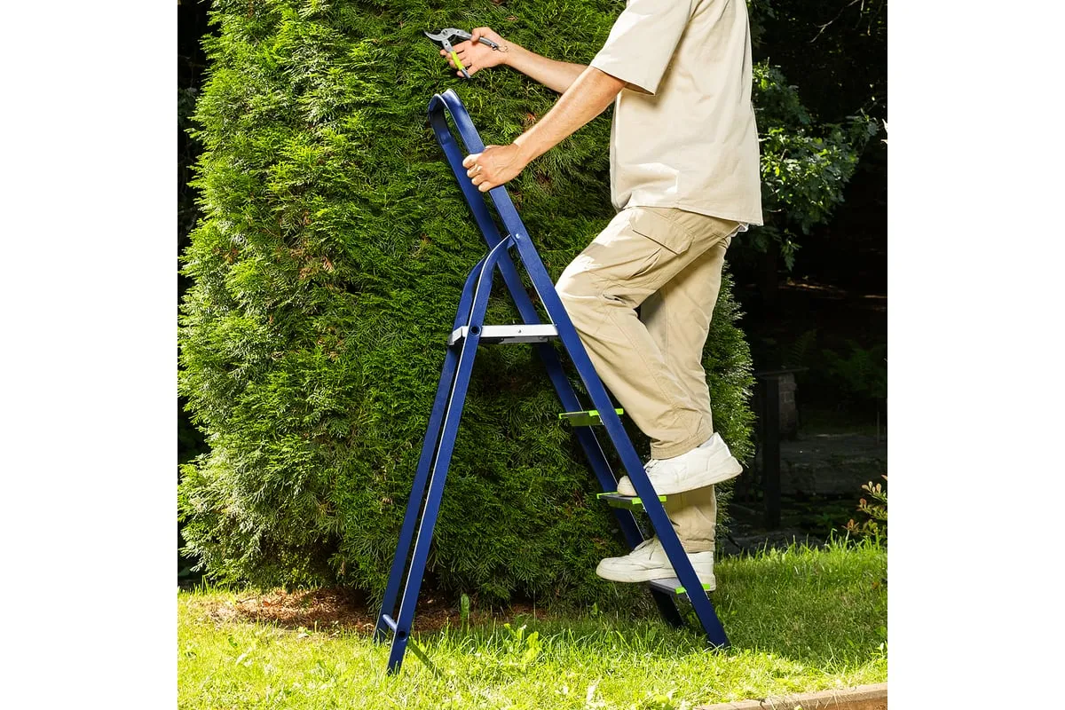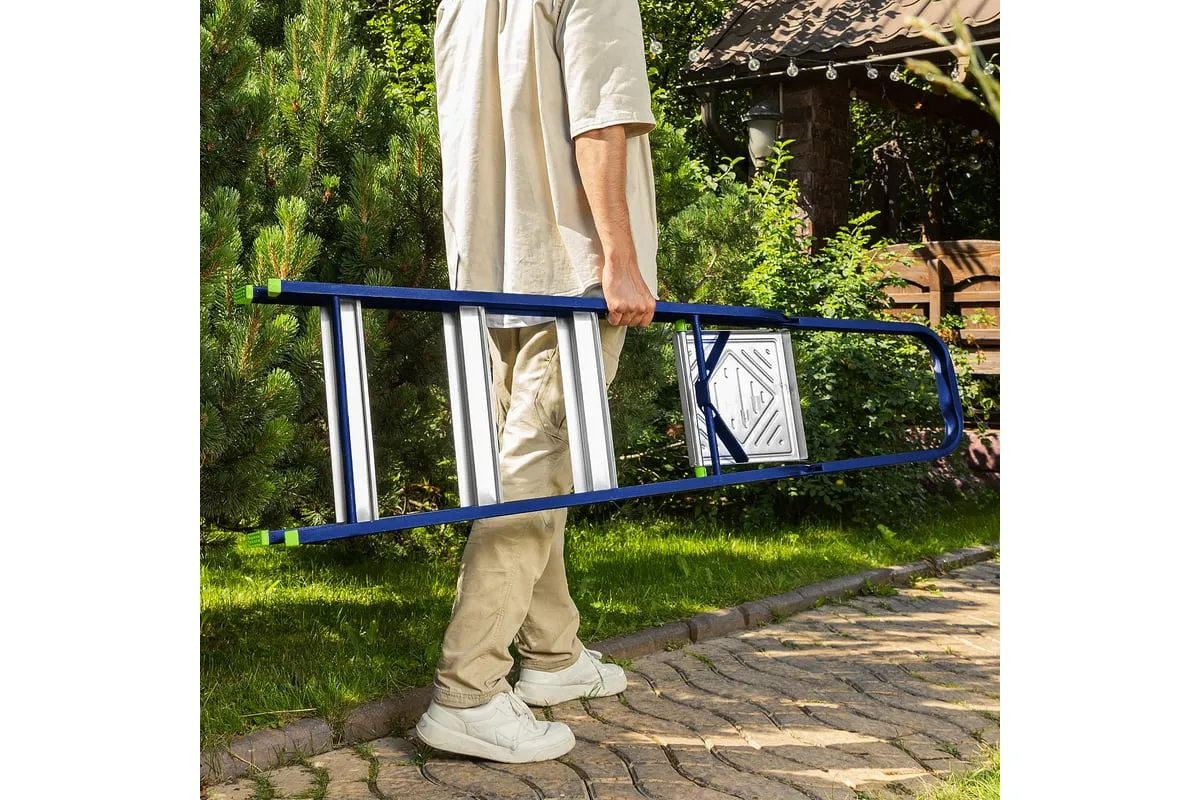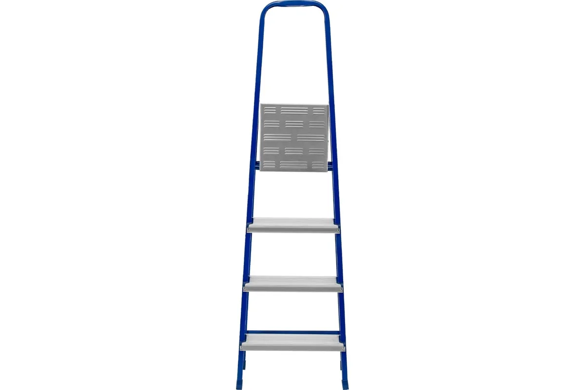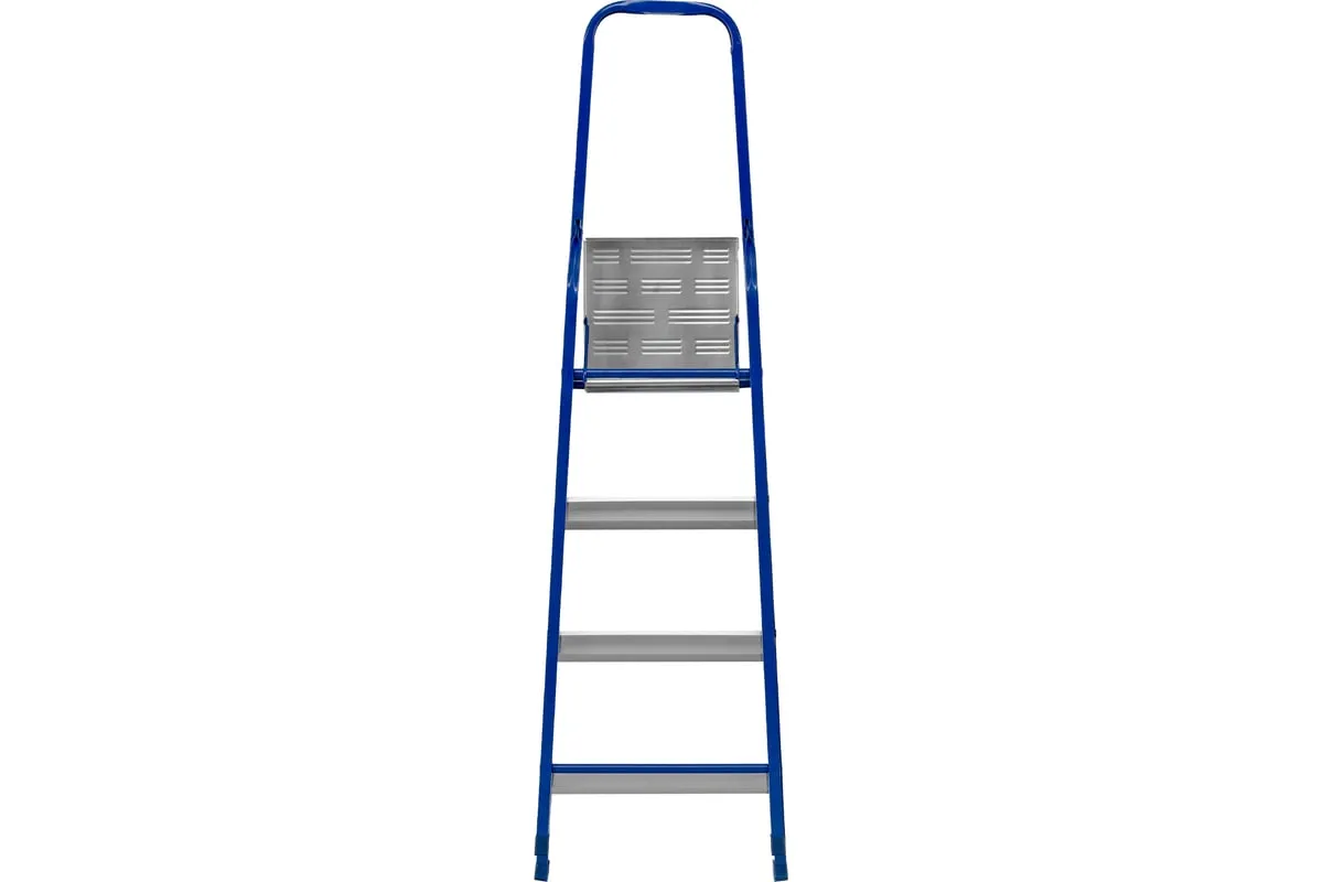 Стремянка Сибртех 97954 со стальным профилем и 4 алюминиевыми ступенями упрощает доступ к предметам, расположенным на антресолях, шкафах, высоких полках. Также будет полезна для проведения отделочных и монтажных работ. Лестница обладает высокой прочностью при весе 5,2 кг и выдерживает нагрузку до 150 кг. Площадка находится на высоте 79,4 см от опорной поверхности, рабочая высота стремянки составляет 279,4 см (при среднем росте пользователя 170 см). Стремянку следует устанавливать на ровную поверхность, работать на ней с электроинструментом нельзя.