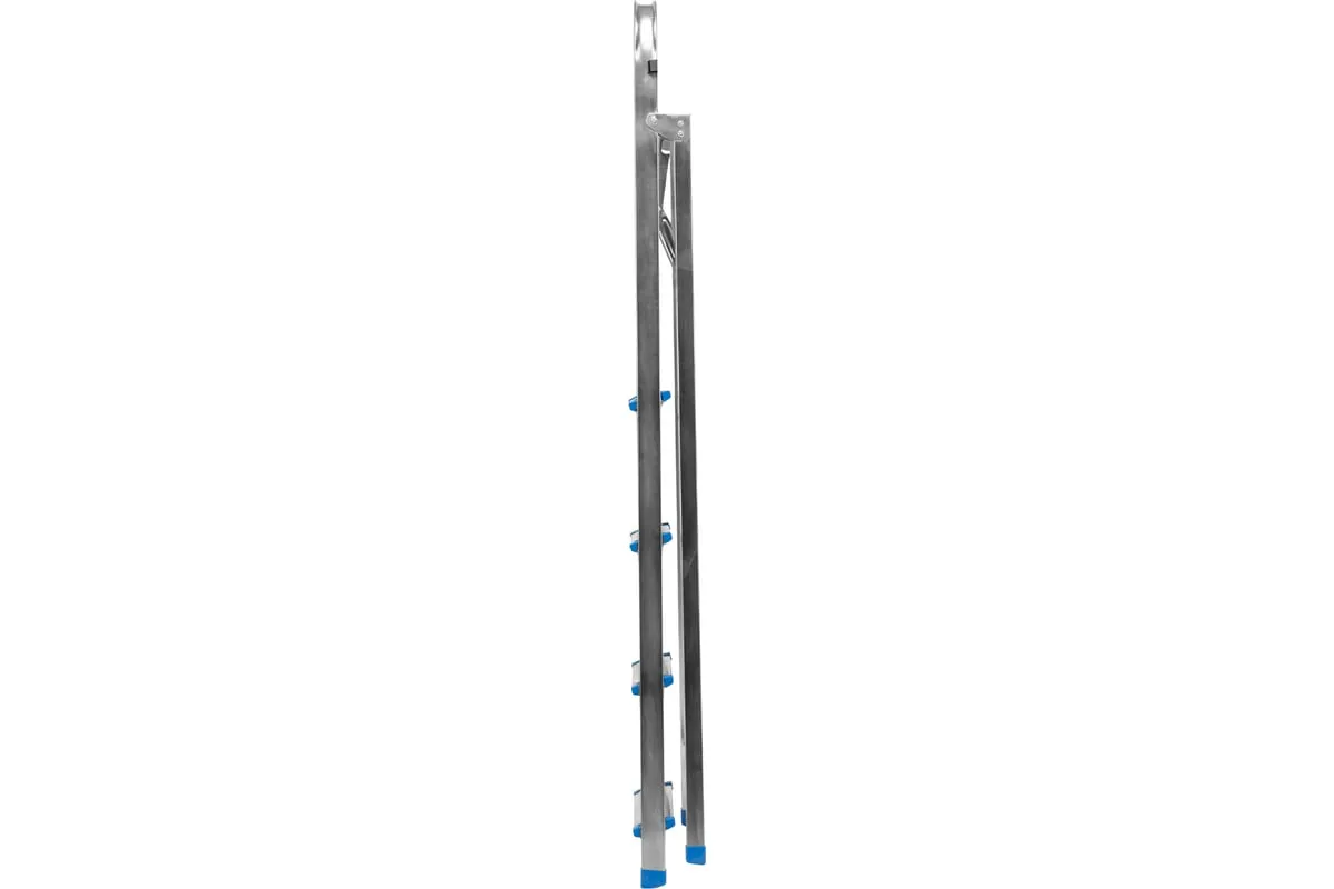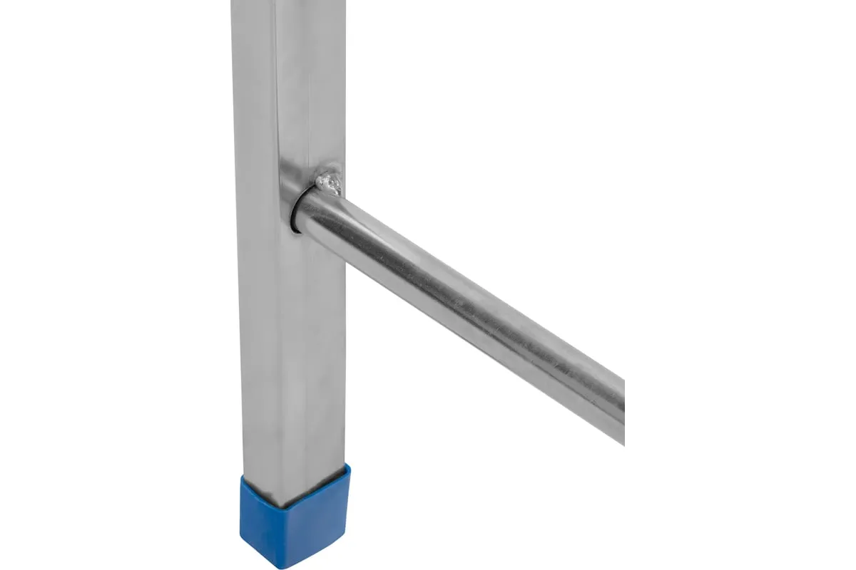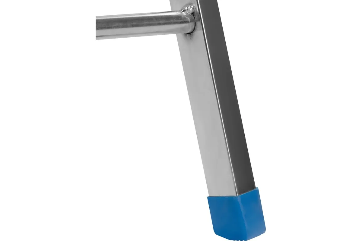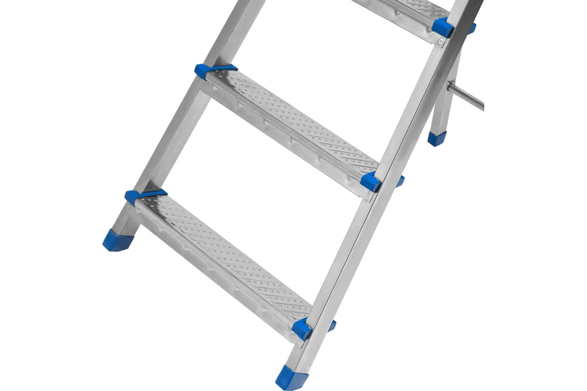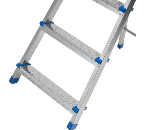 Стальная оцинкованная стремянка Сибртех 97837 с 5 ступенями позволяет повесить полку, картину или шкафчик, достать нужный предмет и решить другие задачи, для которых требуется доступ к предметам на высоте. Рама и ступени из стального профиля выдерживают вес до 120 кг. Расстояние от опорной поверхности до площадки составляет 99 см, при среднем росте пользователя 170 см рабочая высота лестницы — 299 см. Необходимо соблюдать технику безопасности: размещать стремянку только на ровной плоскости и не использовать ее для работы с дрелью, шуруповертом и другим электроинструментом.