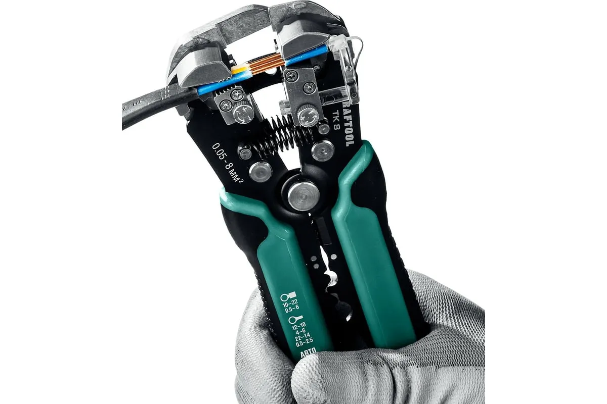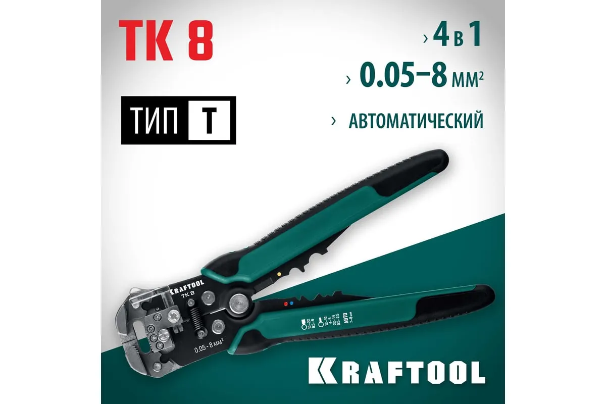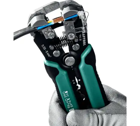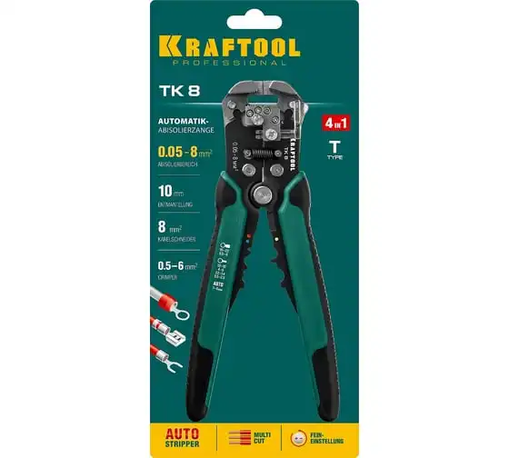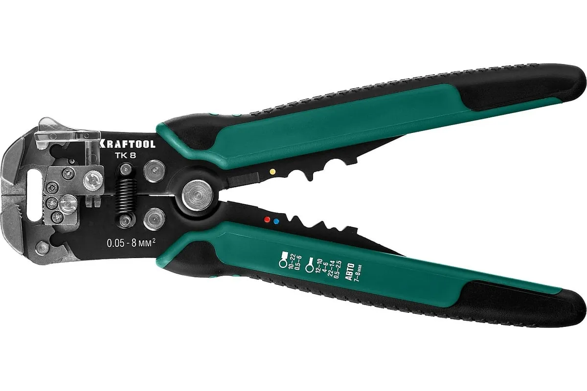Стриппер KRAFTOOL TK-8 автоматический, многофункциональный, 0.05 - 8 мм2, 22637 предназначен для снятия изоляции без повреждения внутренних жил. Инструменты для снятия изоляции KRAFTOOL, изготовлены из высококачественной стали с закалкой рабочих поверхностей, предназначены для профессионального применения. Обладают повышенным ресурсом, обеспечивают наивысшее качество электромонтажных работ. Обжим изолированных наконечников: 0.5-6 мм2. Обжим неизолированных наконечников: 0.5- 2.5; 4.0-6.0 мм2. Снятие оболочки с плоских проводов ВВГ-П, ПУНП .Обжим автомобильных клемм 7-8 мм. Автоматическое снятие изоляции 0,13-6 мм² . Дополнительный микрорегулятор для снятия изоляции 0,05 мм² и 8 мм²