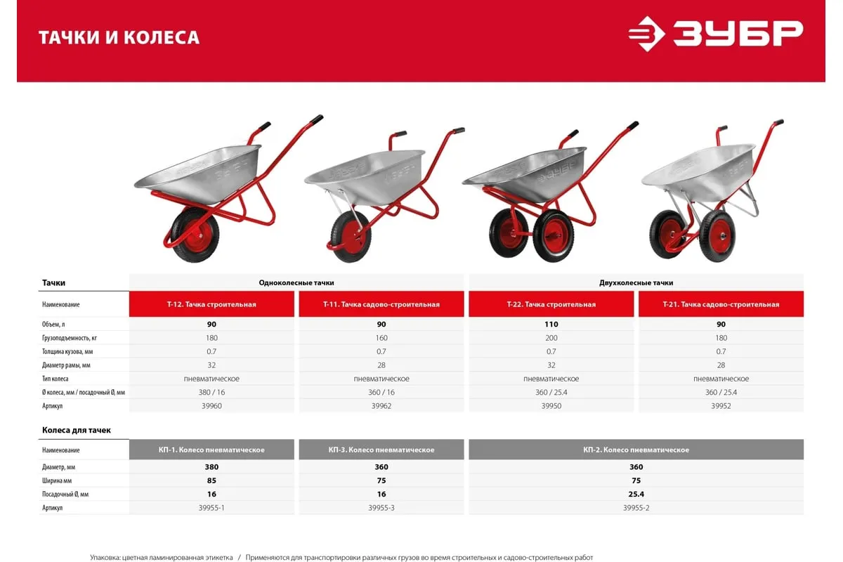 Строительная двухколесная тачка ЗУБР Т-22 200 кг 39950 отличается прочной конструкцией, большой грузоподъемностью, хорошей маневренностью и долговечностью. Модель оснащена стальными подшипниками. Применяется для транспортировки различных грузов во время проведения строительных и садовых работ.