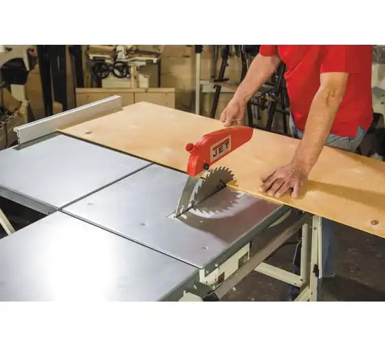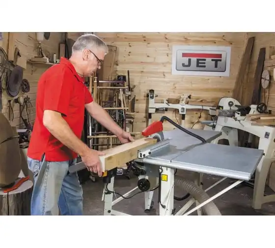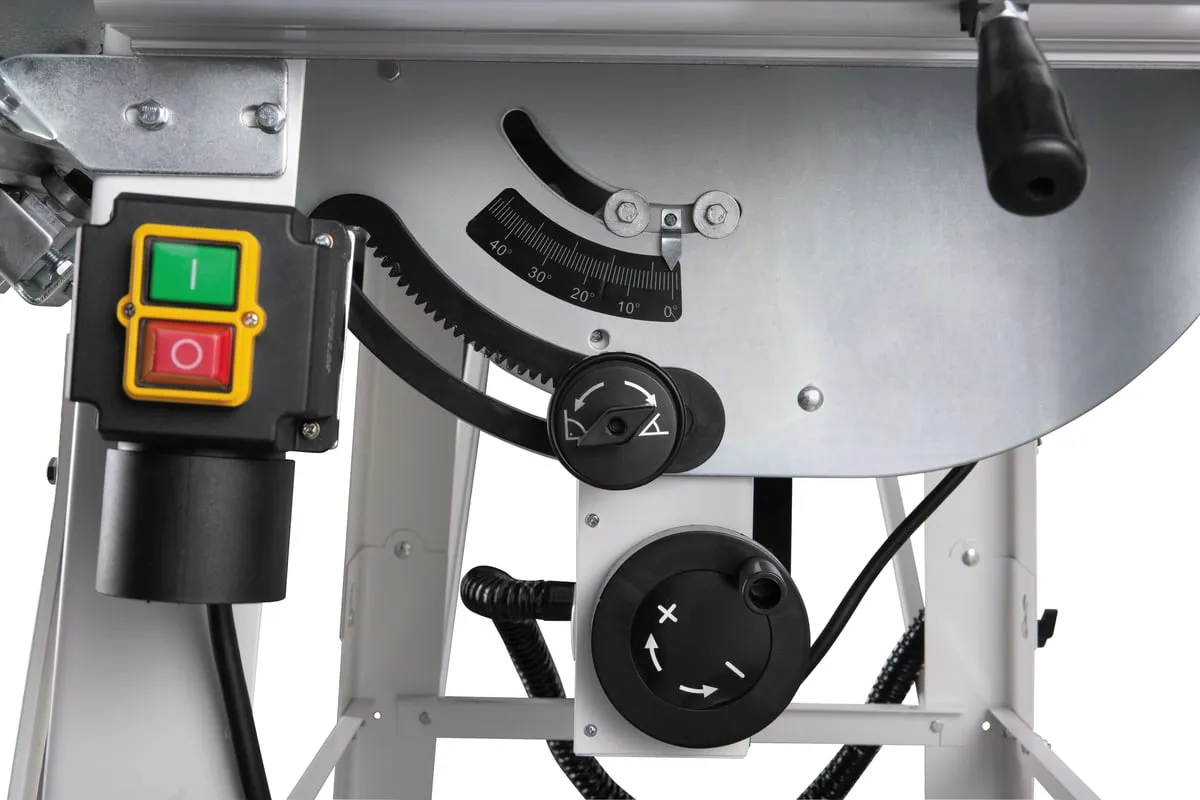 Строительная циркулярная пила JET JTS-315SP 10000910SM используется для распиловки древесных заготовок. Станок широко используется в столярных мастерских, на небольших деревообрабатывающих производствах, а также в бытовых целях. Конструкция агрегата позволяет производить пиление под углом от 0 до 47 градусов. Упор быстро и надежно фиксируется эксцентриковым зажимом. С помощью транспортирной шкалы оператор точно позиционирует заготовку под нужным углом. В сложенном состоянии модель без труда помещается в багажник автомобиля, что упрощает ее транспортировку. Система быстрой остановки двигателя способствует безопасности агрегата. Сетевой провод приобретается дополнительно.