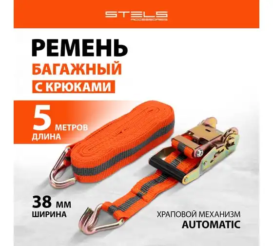 Багажный ремень с крюками STELS 5x0.038м, храповый механизм 54370