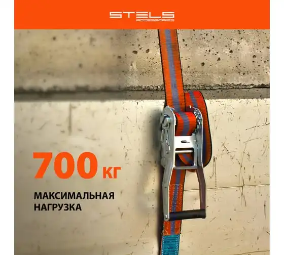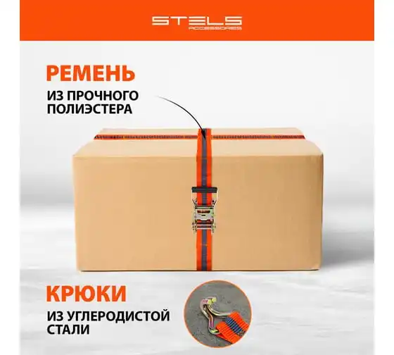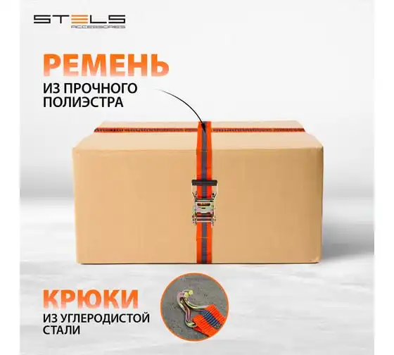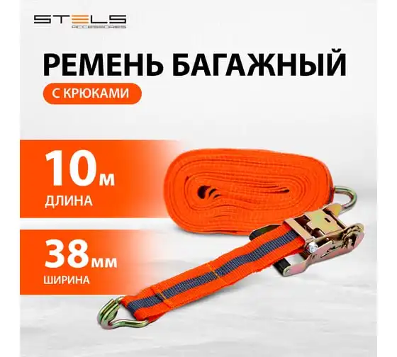 Багажный ремень с крюками 0.05 х 10 м STELS храповый механизм // Россия 54387