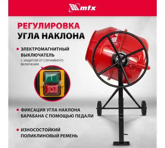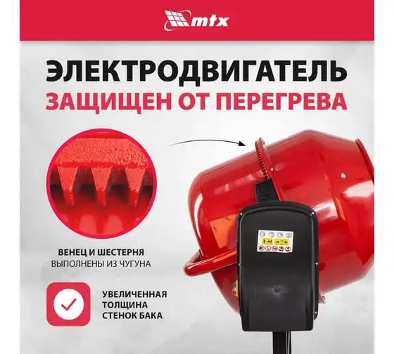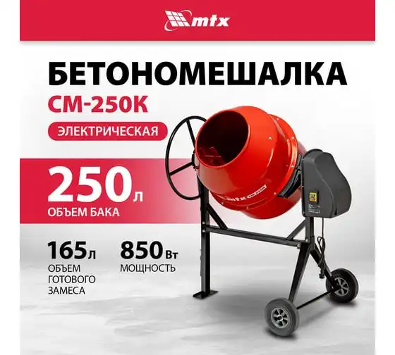Бетоносмеситель MTX СМ-250К, 250 л, мощность 850 Вт 95487