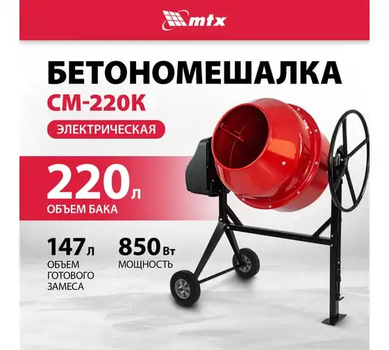 Бетоносмеситель MTX СМ-220К, 220 л, мощность 850 Вт 95486