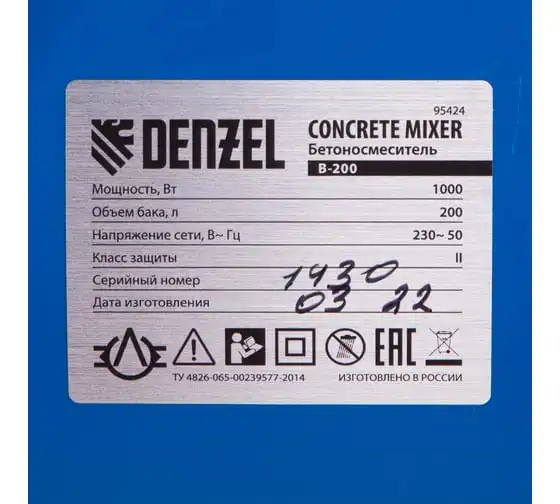 Бетоносмеситель Denzel B-200 95424