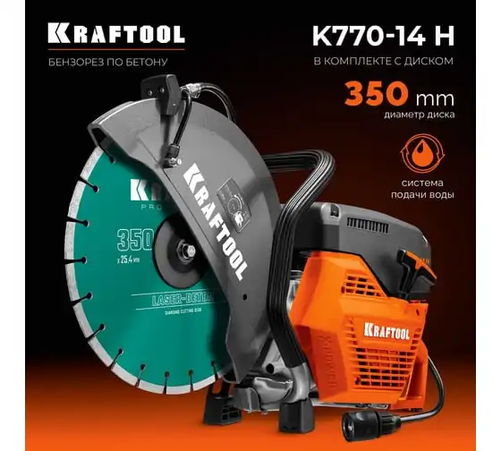 Бензорез по бетону (бетонорез) KRAFTOOL 3700 Вт, 350 мм, диск в комплекте K770-14 H