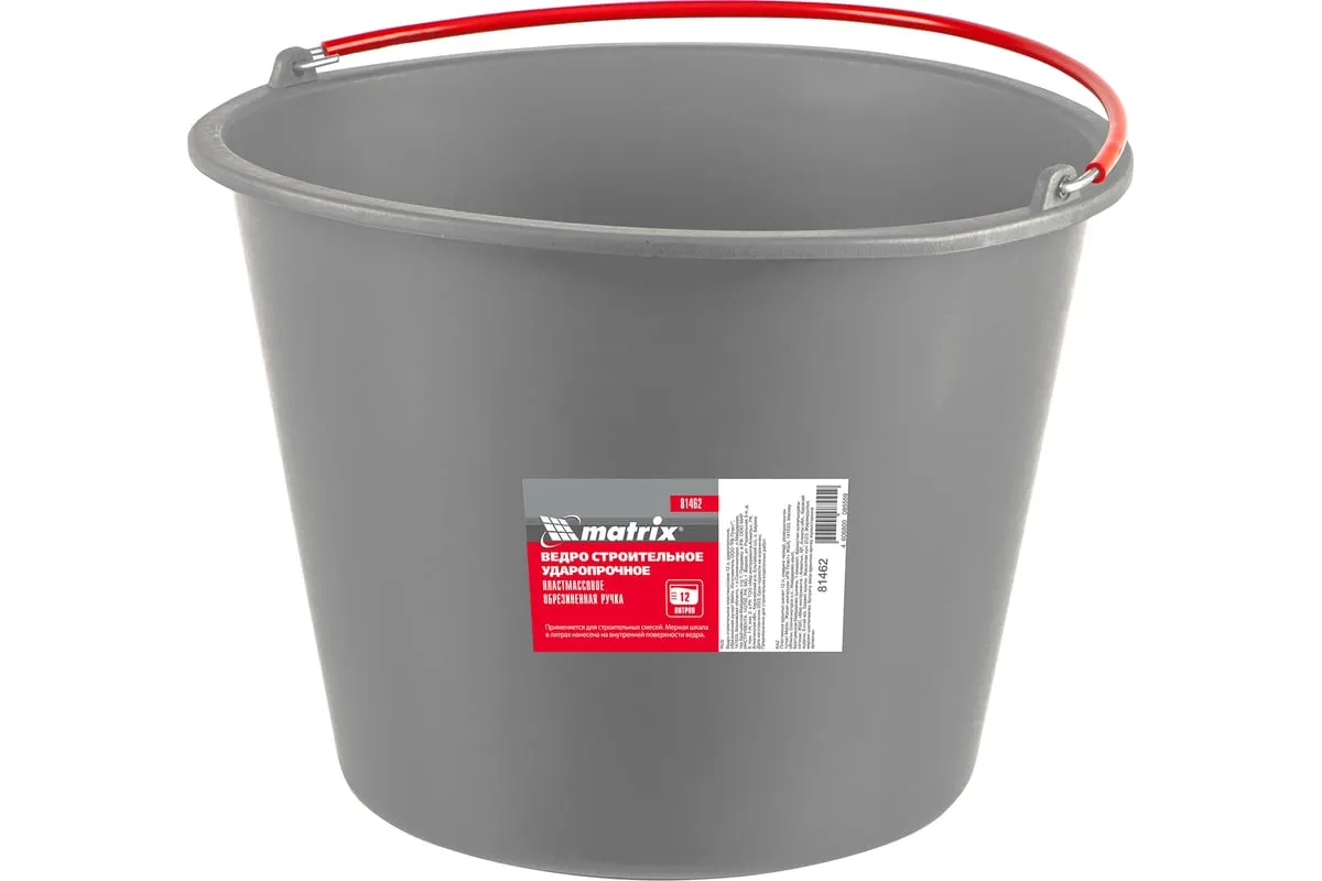 Пластмассовое строительное ведро Matrix 81462 объемом 12 л используется для строительных и отделочных работ. В нем можно замешивать строительные растворы, хранить и переносить жидкие и сыпучие материалы. Мерная шкала на внутренней стороне ведра позволяет отмерять необходимое количество раствора.