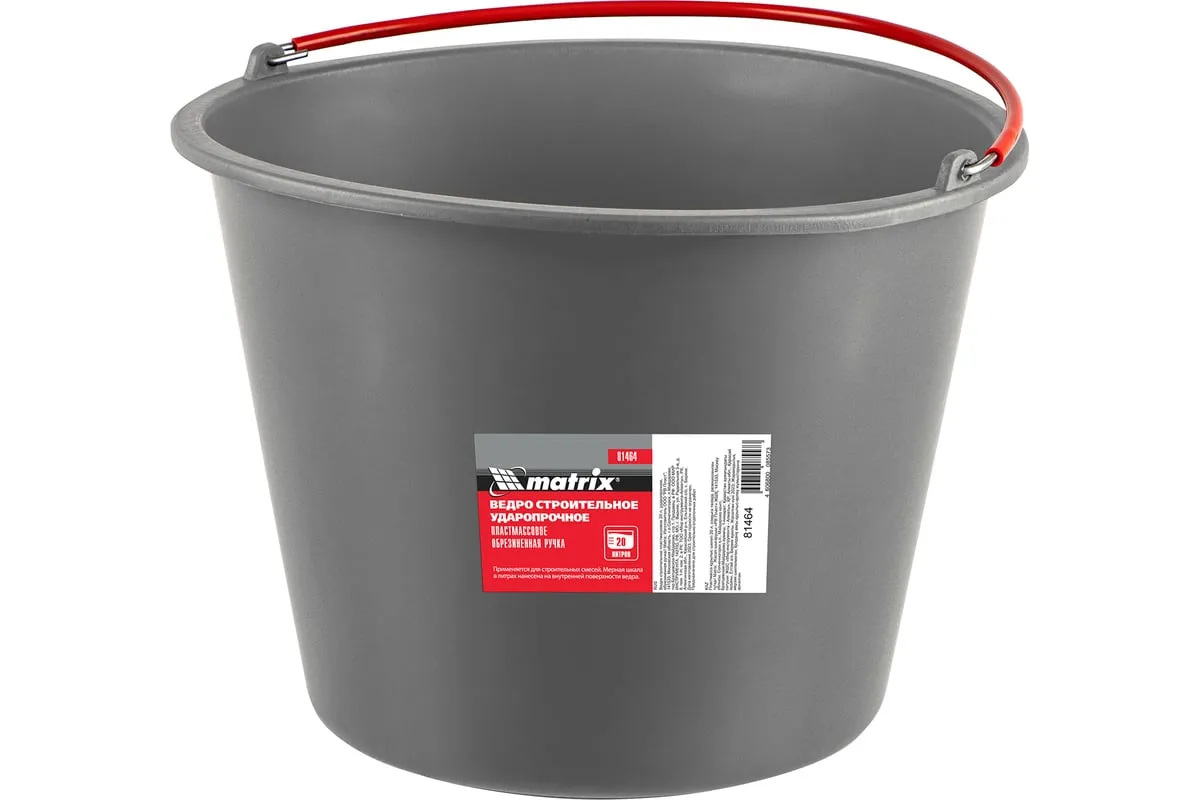 Пластмассовое строительное ведро Matrix 81464 объемом 20 л используется для строительных и отделочных работ. В нем можно замешивать строительные растворы, хранить и переносить жидкие и сыпучие материалы. Мерная шкала на внутренней стороне ведра позволяет отмерять необходимое количество раствора.