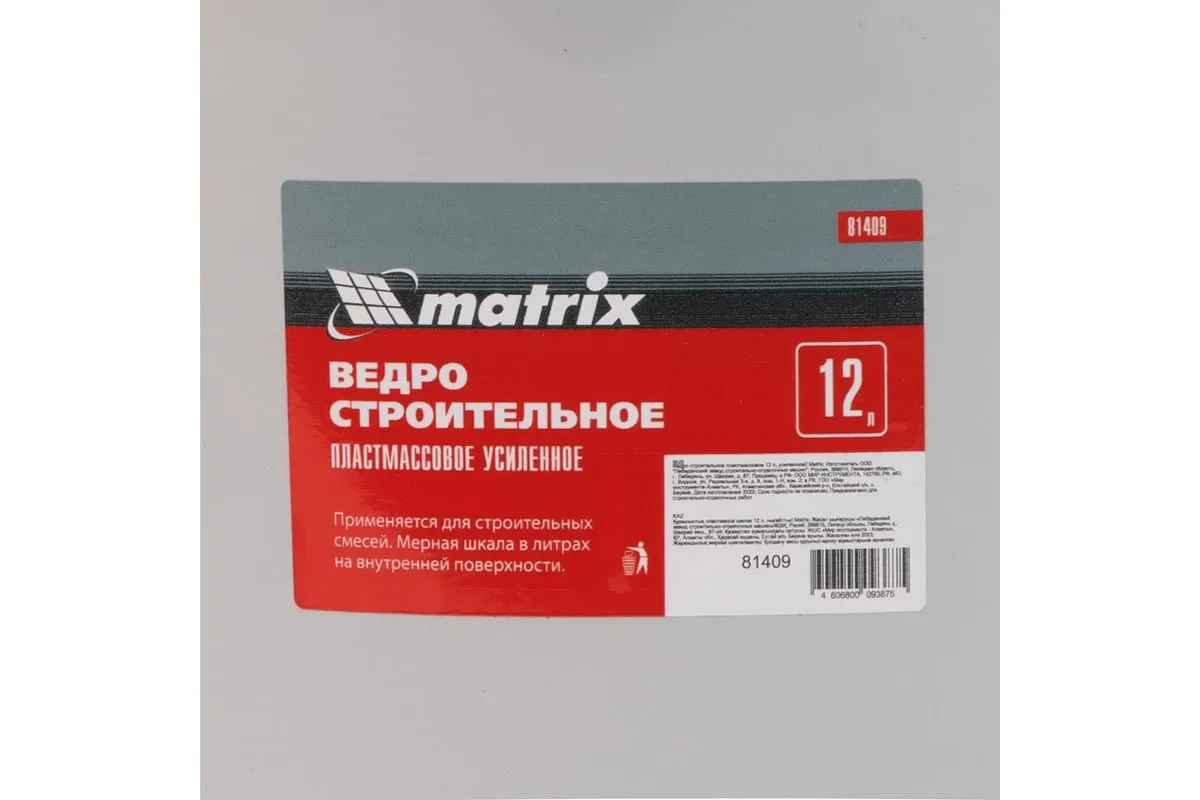 Строительное усиленное пластмассовое ведро MATRIX 12 л 81409 используется для строительных и отделочных работ. В нем можно замешивать лакокрасочные, клеевые и штукатурные смеси, а также перемещать их по строительной площадке. Ведро вмещает до 12 л раствора и подходит для выполнения работ значительного объема.