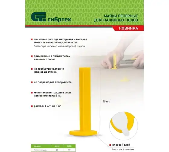 Реперные маяки для наливных полов СИБРТЕХ с клеевым слоем, 20 шт. 88130