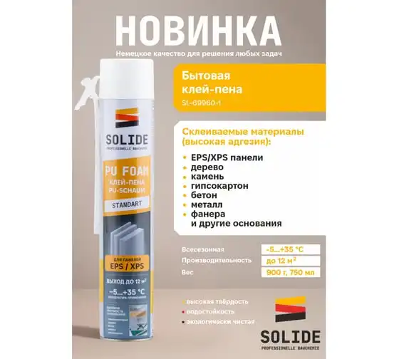 Клей-пена SOLIDE полиуретановая бытовая (750 мл) ЦЗ-2666215734