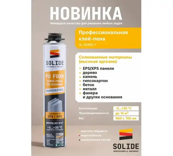 Клей-пена SOLIDE полиуретановая професс. (750 мл) ЦЗ-5542910236