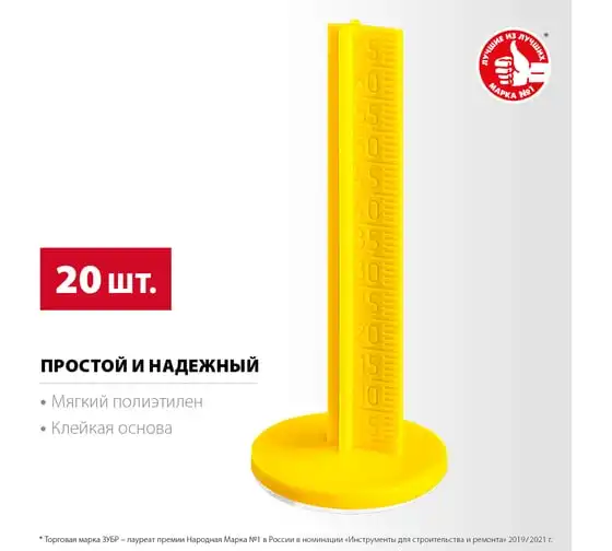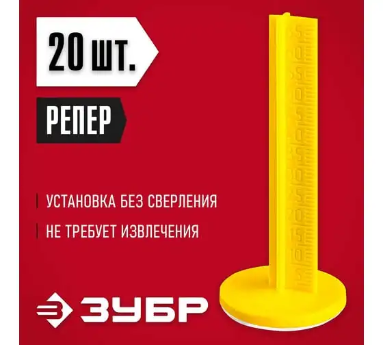 Репер Маяки для пола ЗУБР 70 мм, самоклеящиеся, 20 шт 301616-20