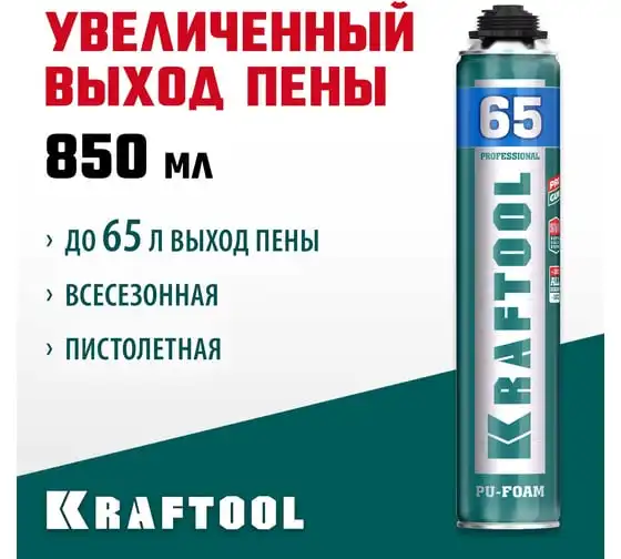Монтажная пистолетная пена KRAFTOOL Pro 65 SVS всесезонная, 850 мл, выход до 65 л 41184_z01