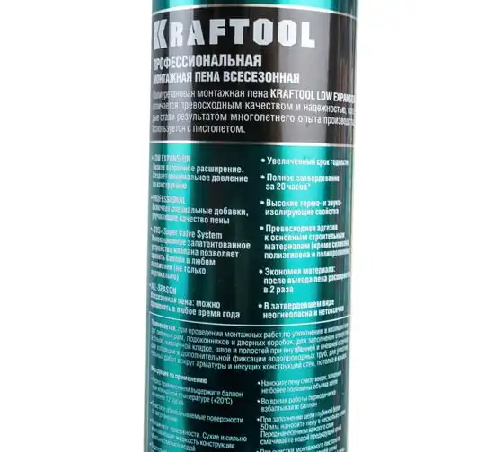 Профессиональная полиуретановая пена для монтажного пистолета Kraftool KRAFTFLEX PROFI LOW всесезонная, SVS, 750 мл 41181_z01