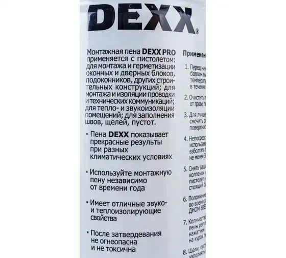 Полиуретановая монтажная пена DEXX для монтажного пистолета, всесезонная, 750 мл 41126