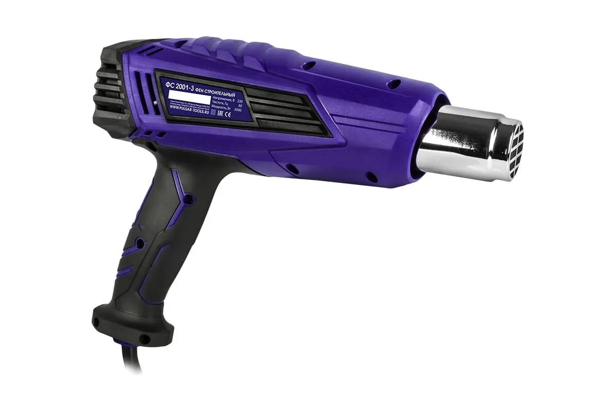 Строительный фен Пульсар ФС 2001-3 906-623 предназначен для нагнетания горячего воздуха, который может быть использован для сушки, пайки, лужения, снятия лакокрасочных покрытий, монтажа термоусадочных трубок, термо деформации, размораживания труб, помощи в разъеме резьбовых соединений и т. д.