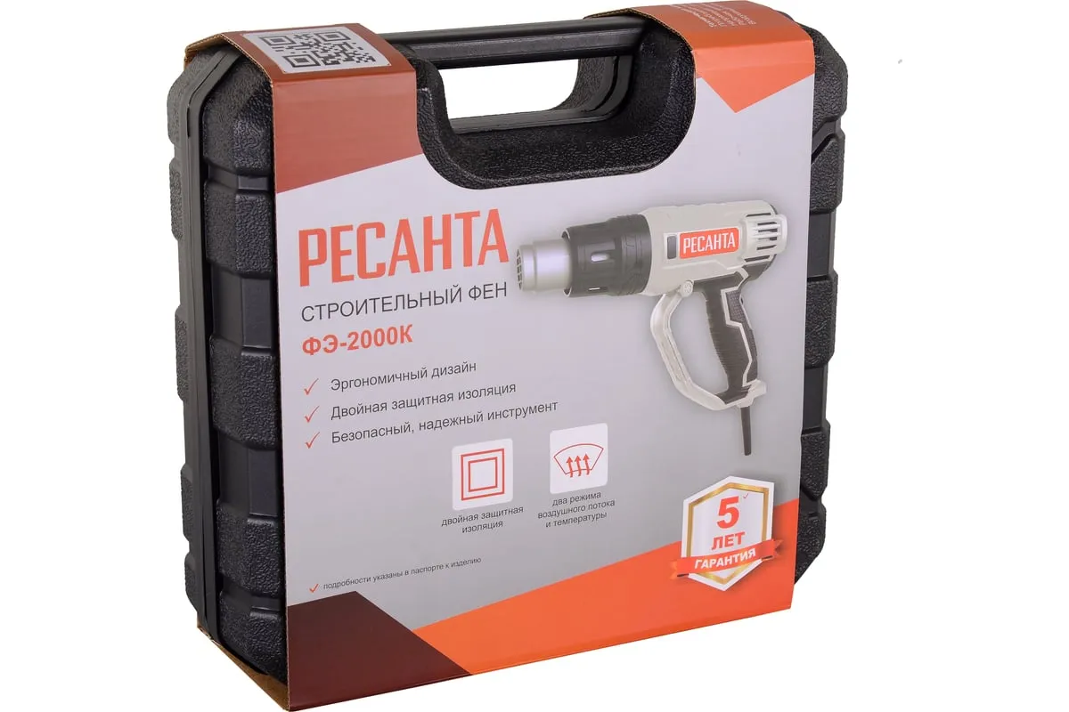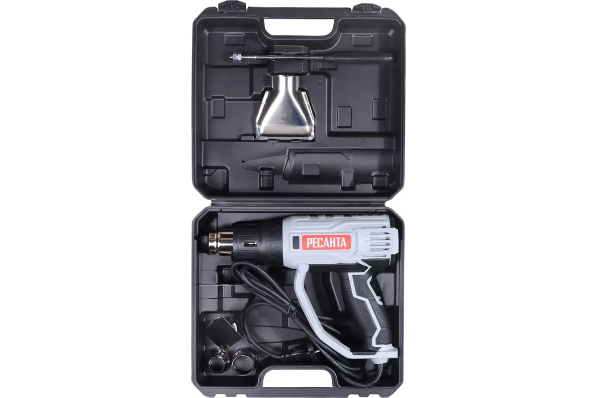 Термопистолет РЕСАНТА ФЭ-2000К оснащен удобной рукояткой с мягкой накладкой. В сочетании с малым весом 0,75 кг это обеспечивает удобство и безопасность работы. Кабель длиной 2 м позволяет свободно двигаться во время работы. Комплектация инструмента дополнена 4 насадками. Прочный пластиковый кейс обеспечивает удобство хранения и транспортировки. Обработка поверхностей горячим воздухом позволяет качественно удалять лакокрасочные покрытия, размягчать клеевой слой, нагревать термоусадочные трубы, размораживать водопроводные системы.