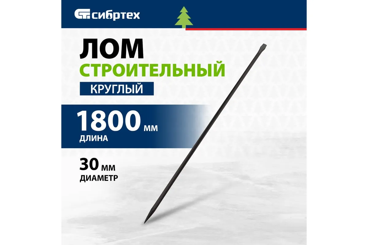 Строительный лом СИБРТЕХ d 30 мм, длина 1800 мм, круглый 253265 позволяет демонтировать различные конструкции и разбивать твердые материалы — асфальт, бетон, кирпич. Подходит для раскалывания льда и применения в качестве рычага при перемещении тяжелых предметов. Лом предназначен для профессионального использования, а также будет полезен в домашнем хозяйстве.