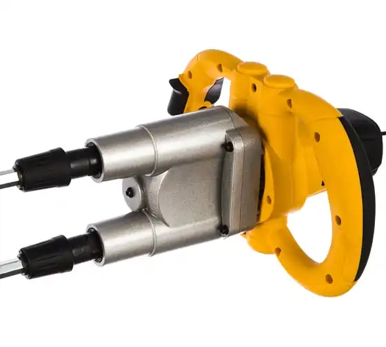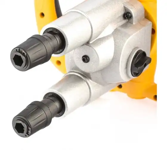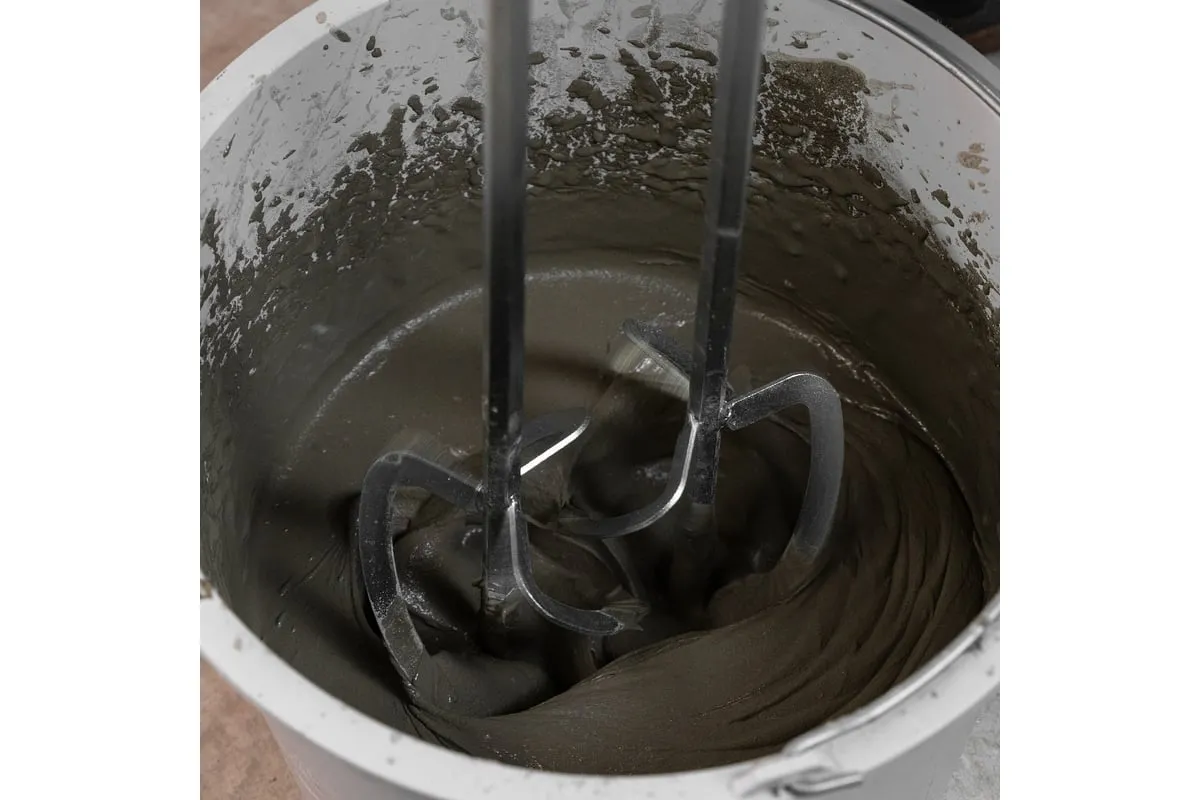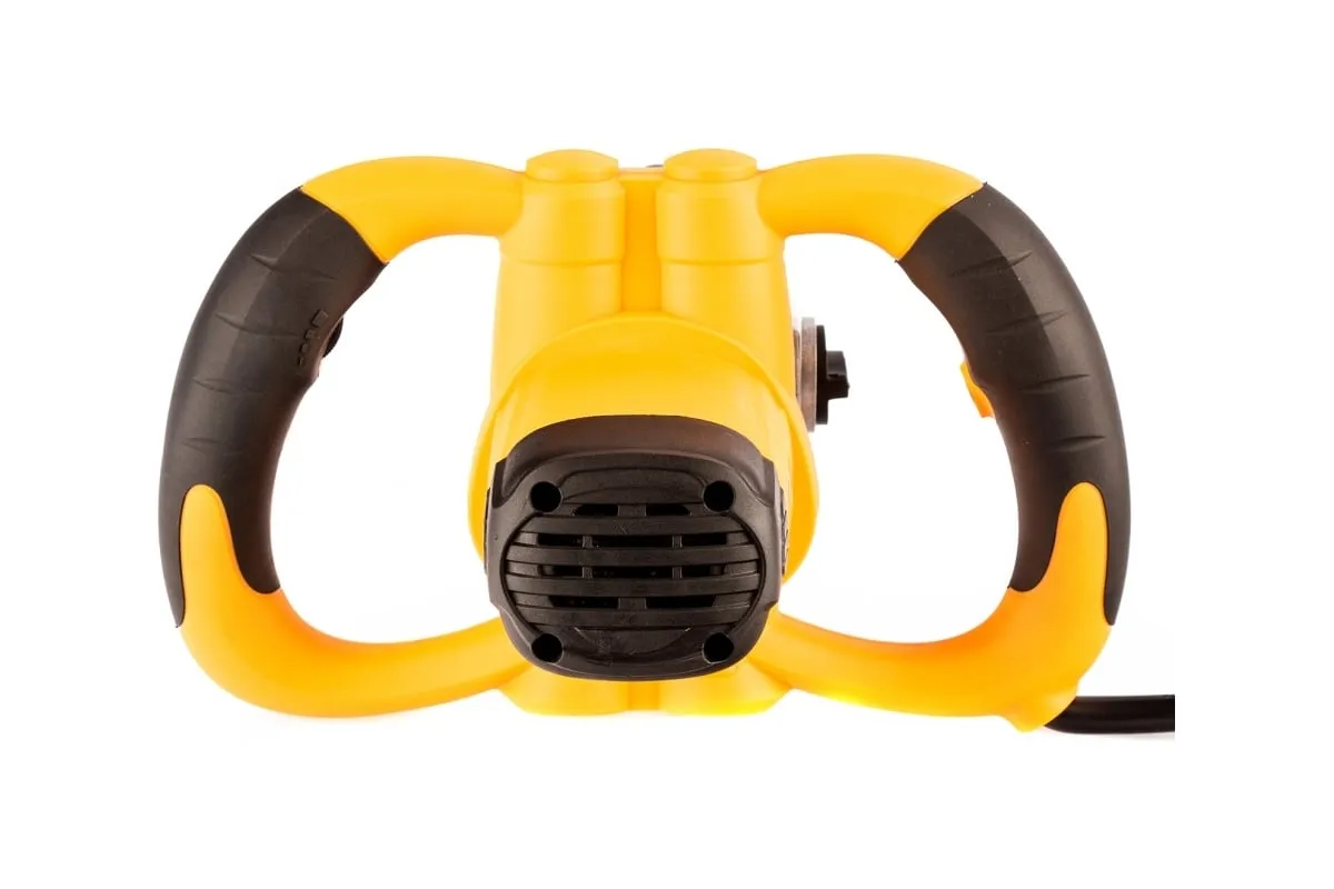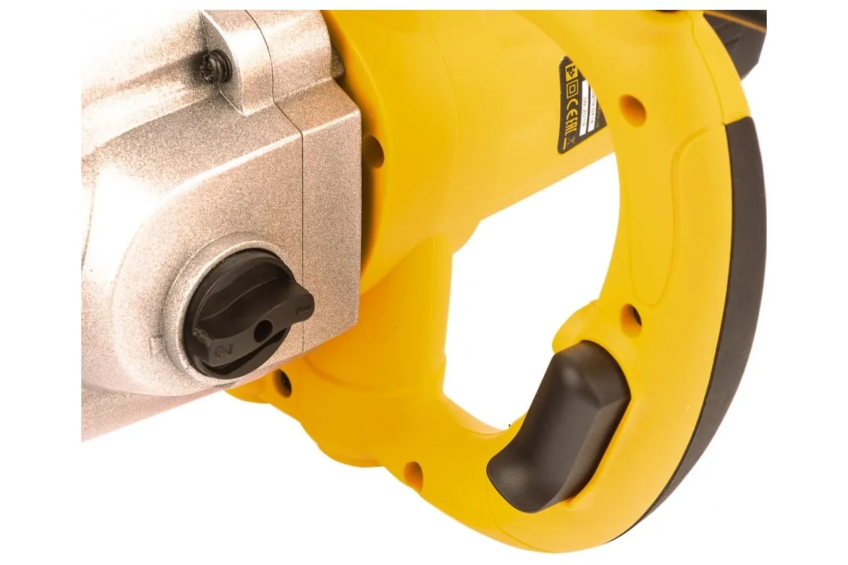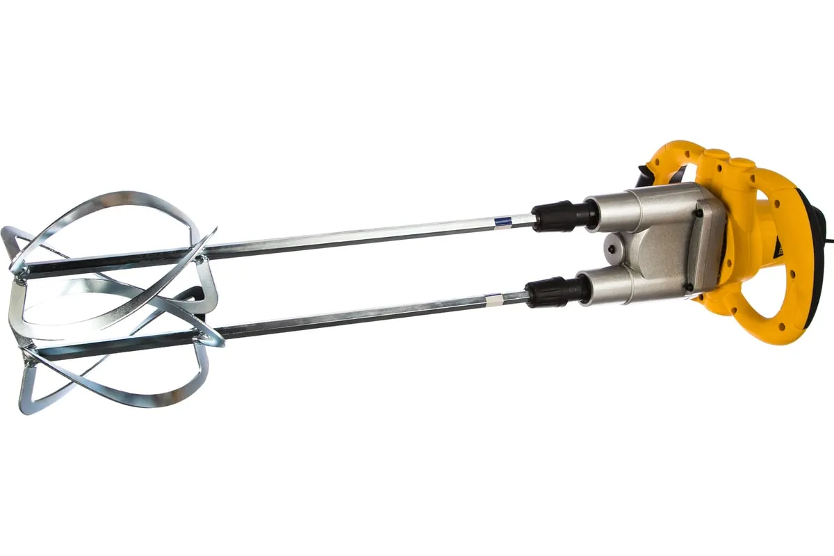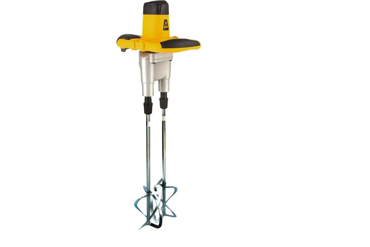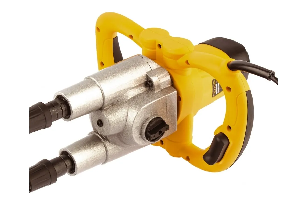 Строительный миксер DENZEL EM-2-1600 27911 используется во время строительных работ.