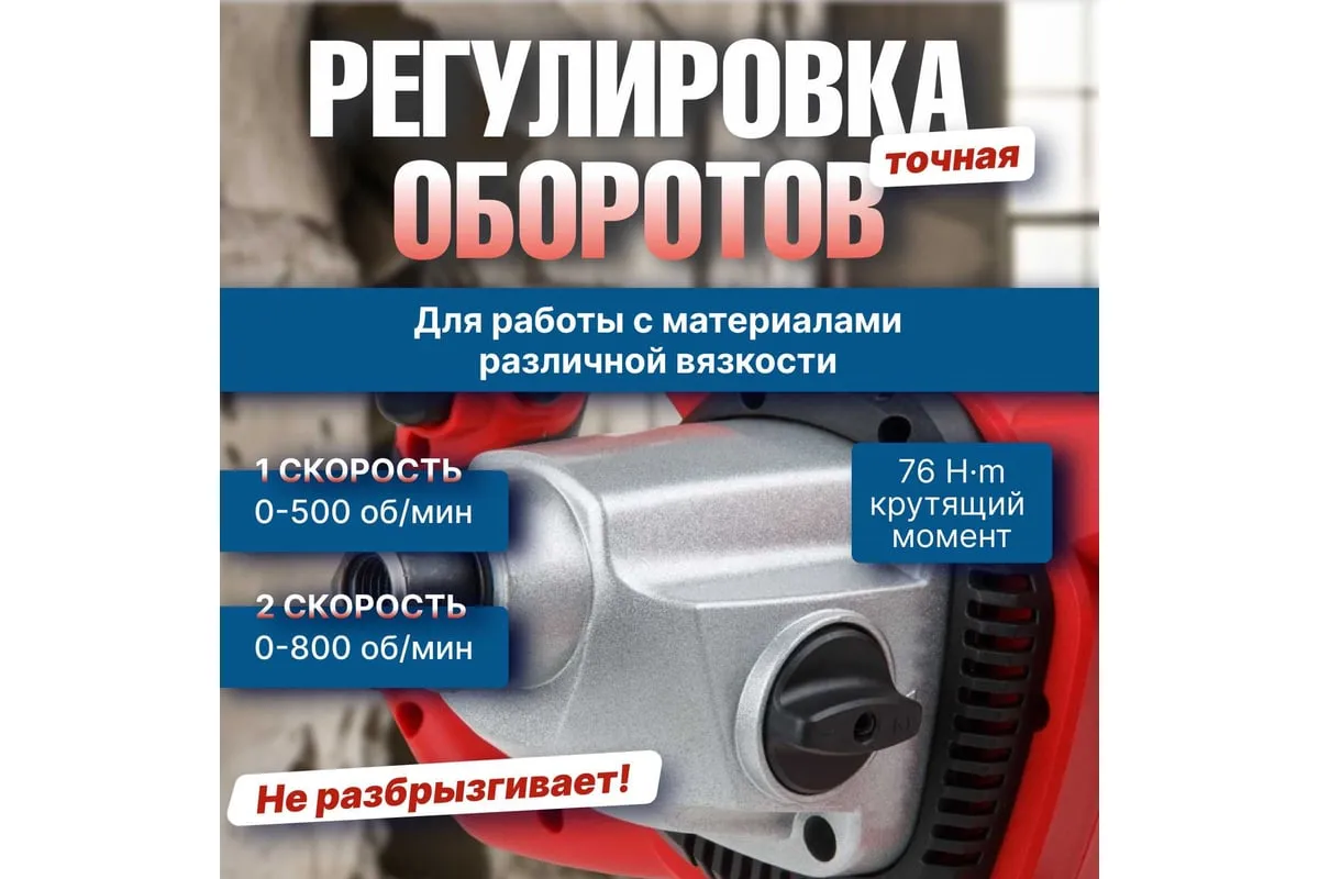 Наличие 2-х скоростного редуктора предотвращает разбрызгивание при размешивании материала различной вязкости.