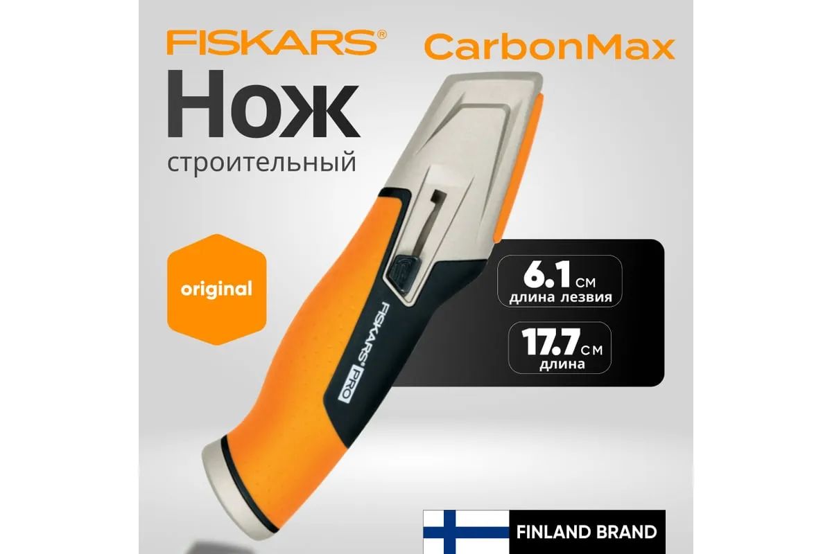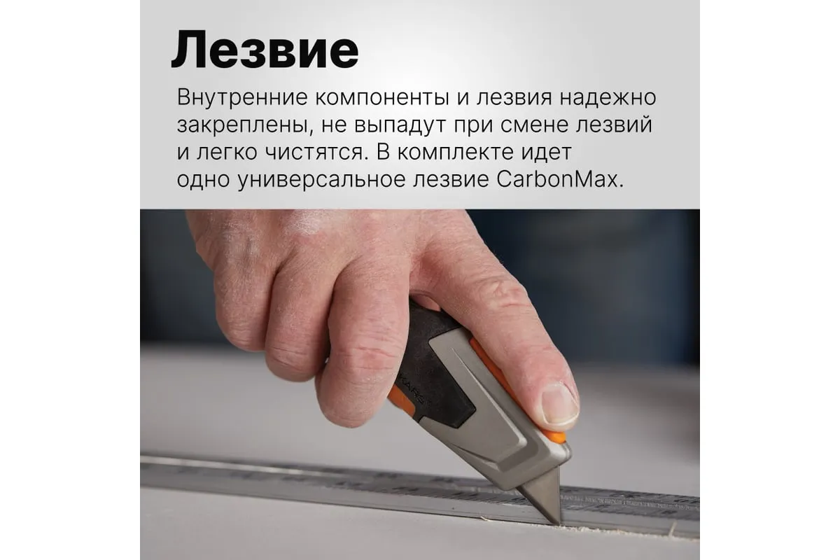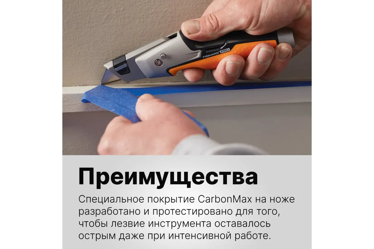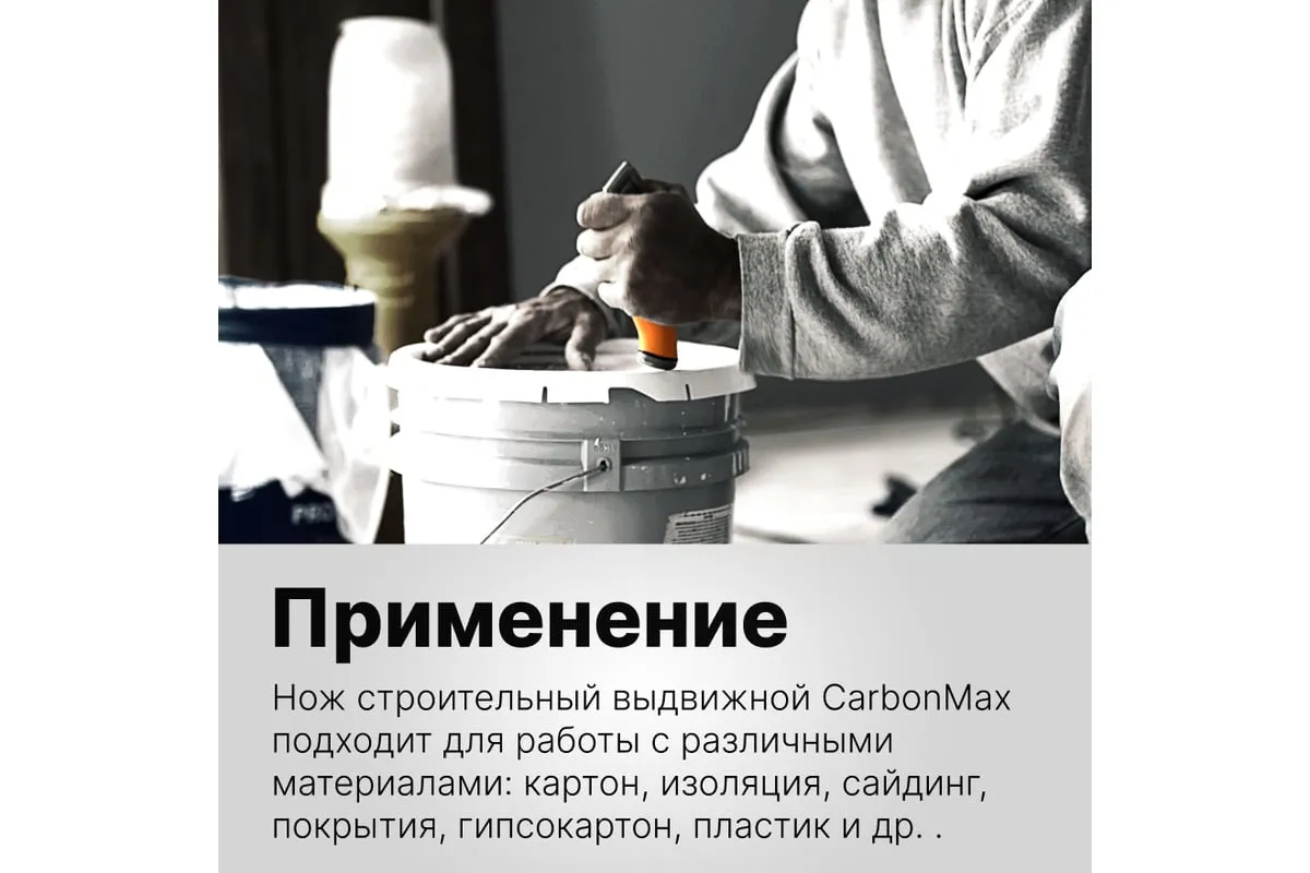 Строительный нож с выдвижным сменным лезвием Fiskars CarbonMax 1027223 подходит для резки различных отделочных материалов: