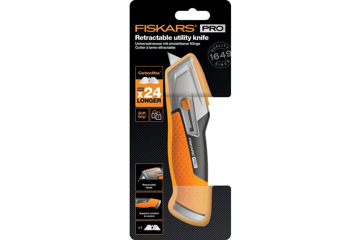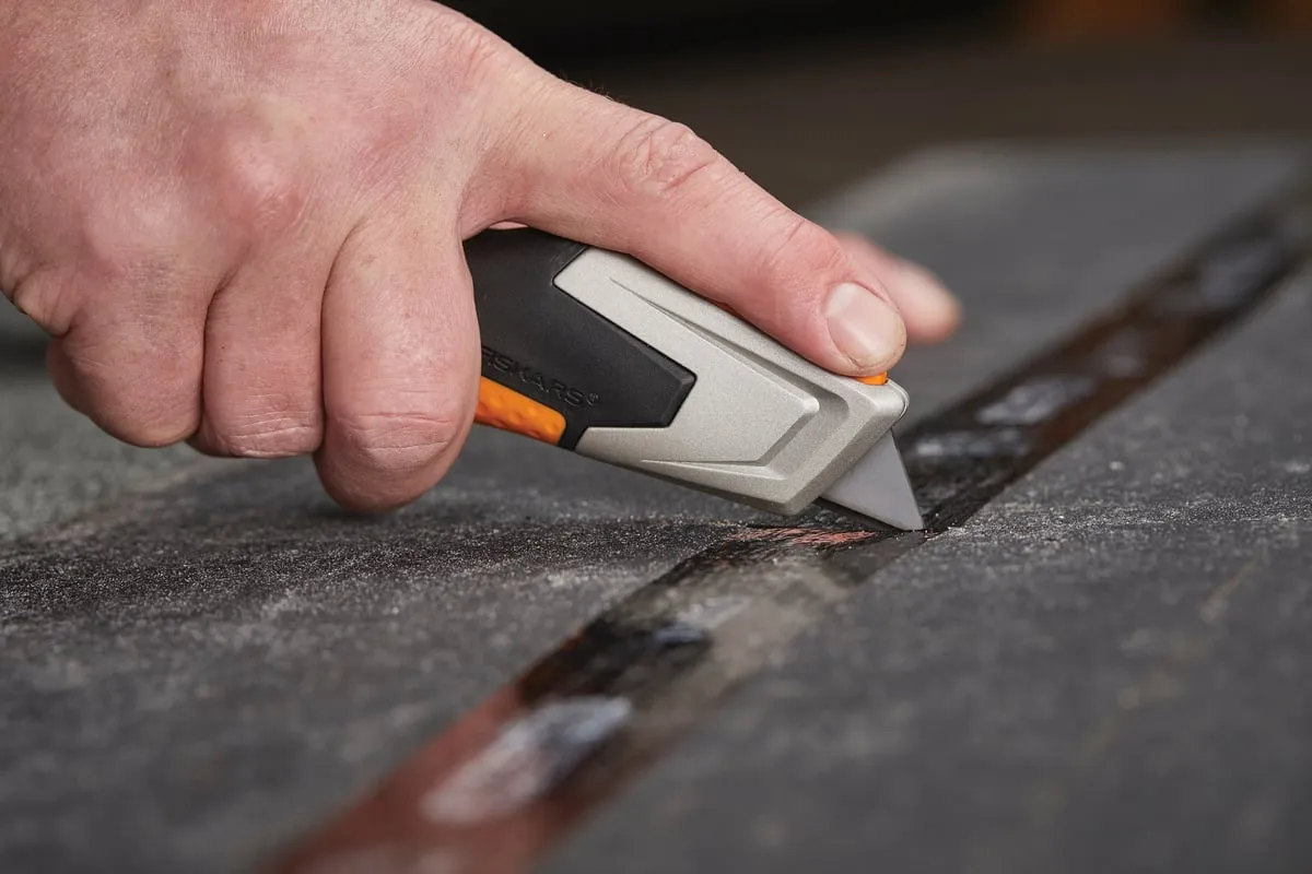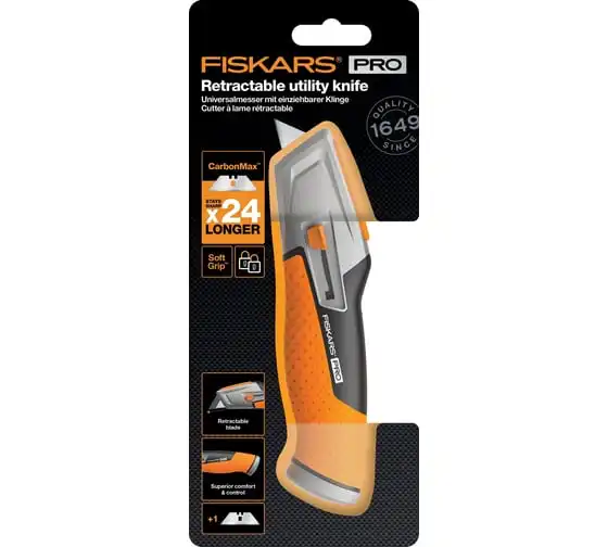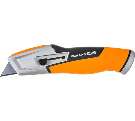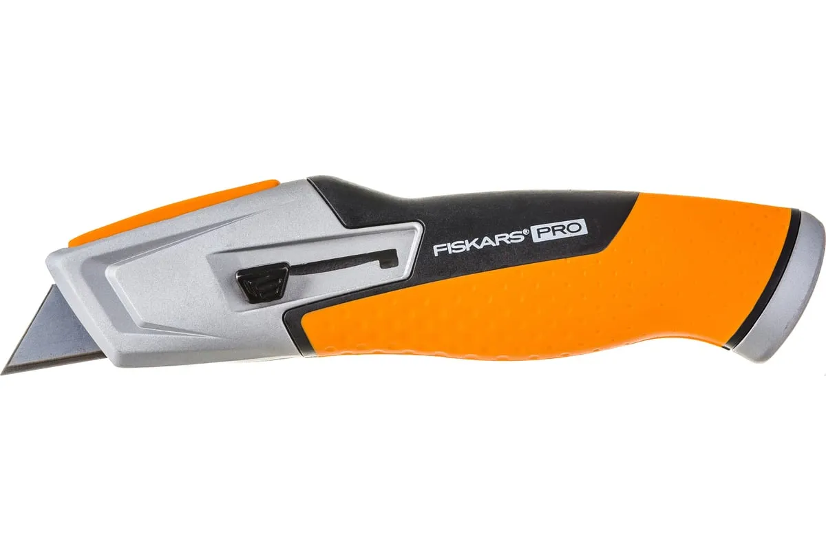 Строительный нож с выдвижным сменным лезвием Fiskars CarbonMax 1027223 подходит для резки различных отделочных материалов: