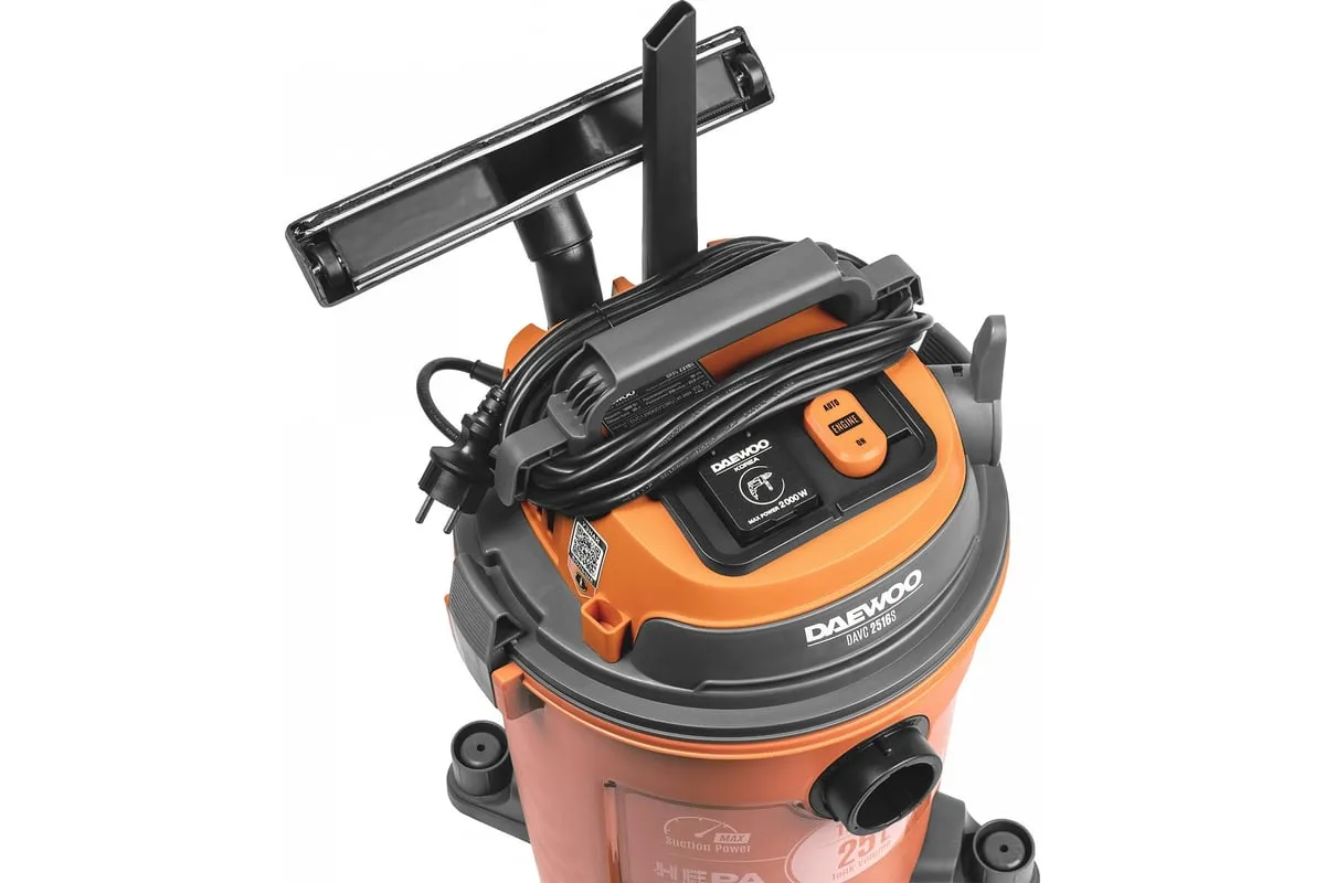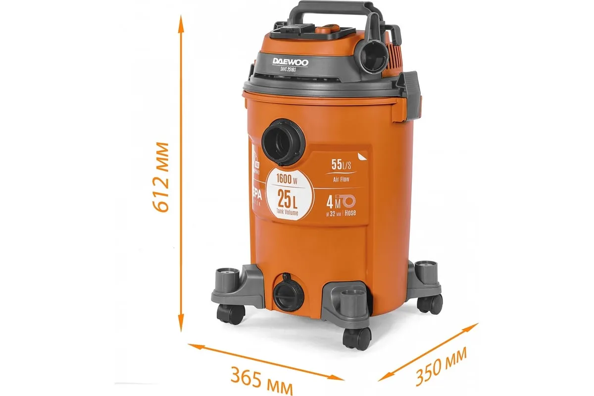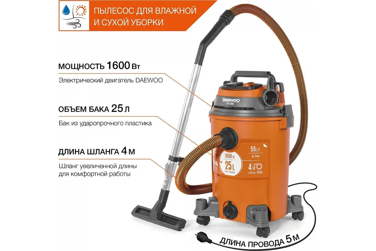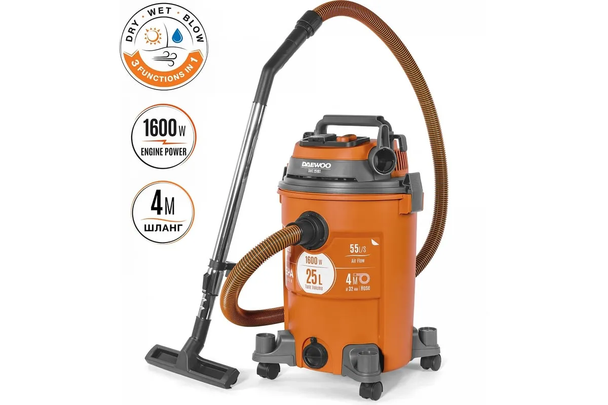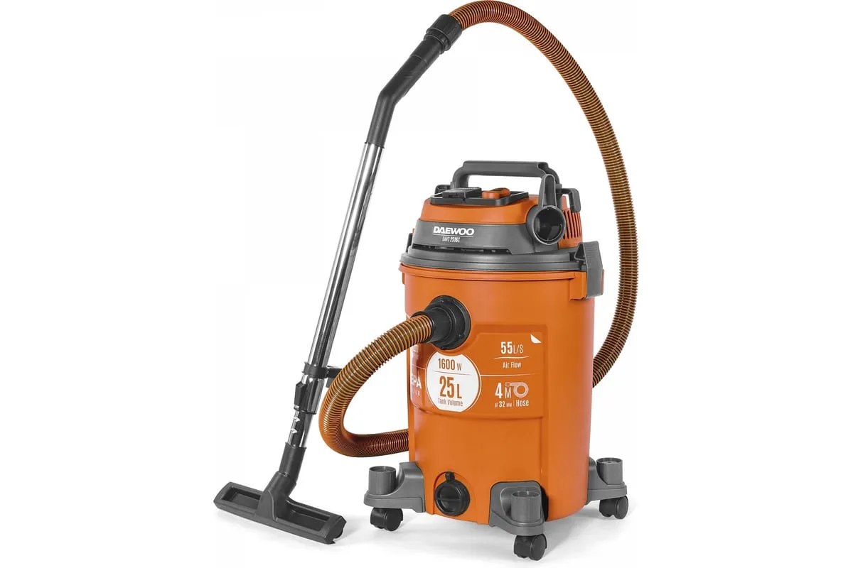 Строительный пылесос с шлангом DAEWOO 4 м DAVC 2516S предназначен для очистки помещений во время строительных работ.