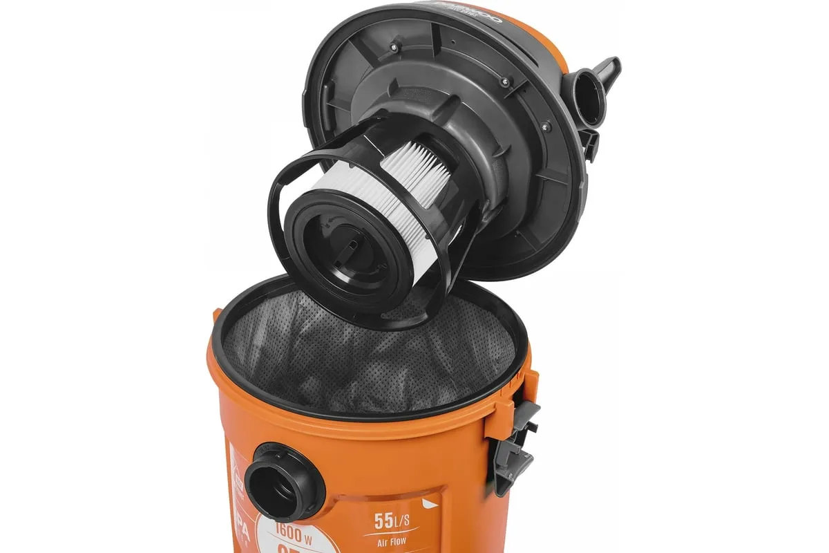 Оснащен двойной системой фильтрации. В комплекте фильтр предварительной очистки и второй фильтр HEPA для сбора самых мелких частиц пыли.
